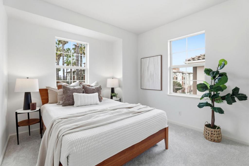 Welcome to 362 Meridian Ave, a spacious and stylish 3 bedroom, 2.5 bath corner-unit townhome offering 1,512 sq. ft. of thoughtfully designed living space. With only 1 shared wall, an attached two-car garage, and rare additional driveway parking, this home offers excellent privacy and everyday convenience. Inside, enjoy an inviting interior with a cozy fireplace, elegant chandeliers, and recessed lighting throughout. Carpet and luxury vinyl flooring create a warm, functional layout ideal for daily living. Renovated bathrooms feature a modern design, including a bidet in the private primary ensuite. Adjacent to the kitchen, a flex space provides versatility for a home office, study, or bonus living area. The kitchen includes essential appliances such as a dishwasher, refrigerator, and stove. Step outside to your private patio for morning coffee or evening relaxation. Nearby community amenities include a playground and outdoor gym, perfect for dog walks, playtime, or enjoying the outdoors. Enjoy a walkable lifestyle with a Walk Score of 89. Safeway is accessible via a pedestrian walkway with no street crossings, and local favorites like Hapas and Chromatic Coffee are just blocks away. Highlights include an upstairs washer/dryer and ample storage. Come see this home before its gone!