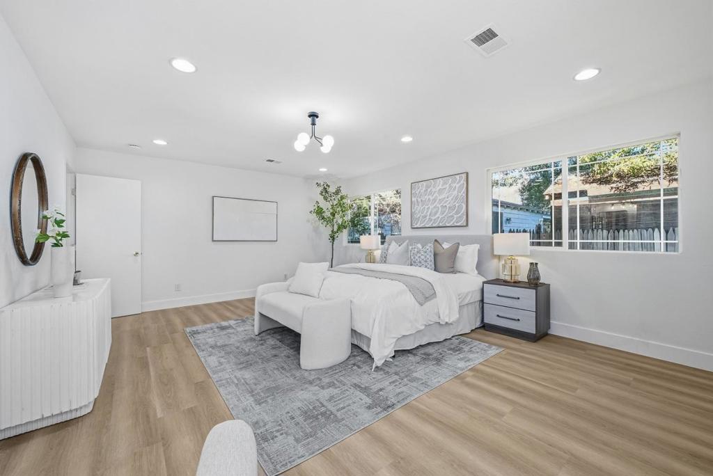 Charming single-level 4BD/3BA home with a spacious, light-filled layout in the heart of East Palo Alto. Set on an approx. 5,942 sqft lot, this move-in-ready residence offers 1,963 sqft of thoughtfully refreshed living space with new flooring, fresh interior paint, and recessed lighting throughout. The open-concept living and dining areas flow seamlessly into the kitchen ideal for everyday living and entertaining. The updated kitchen offers ample cabinetry and counter space for cooking and hosting, while the remodeled bathrooms add a fresh, contemporary finish, including double vanities in two baths. Enjoy an oversized living room, a separate formal dining area, a generously sized primary suite, and spacious secondary bedrooms throughout. The flat backyard with separate side access offers excellent usability and potential for future expansion/ADU opportunity (buyer to verify). Parking is abundant with a side-by-side 2-car garage plus a wide driveway accommodating two additional side-by-side spaces. Exceptionally located: ~5 minutes to Meta, ~10 minutes to downtown Palo Alto, and ~10-15 minutes to Stanford and major tech campuses, with convenient access to schools, parks, and commuter routes. A rare blend of space, comfort, and connectivityexcellent for homeowners and investors