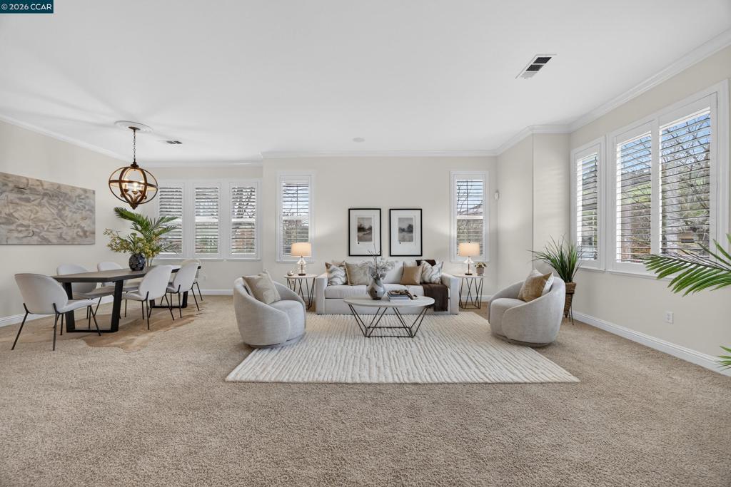 Exquisite Single-Story Estate with Hillside Views in Alhambra Valley! Nestled in a serene cul-de-sac with stunning hillside views and great curb appeal, this single-story gem offers easy access to Hwy 4 and I-680 for Bay Area commuting. No HOA dues. The open-concept chef’s kitchen with granite countertops, gas range, and walk-in pantry flows to the family room and a stunning backyard with a stamped concrete patio, Secret Garden, lush lawn, and mature trees—perfect for entertaining. Features 4 spacious bedrooms, an office ( potentially 5th bedroom), 3 full baths, 10-ft ceilings, crown molding, plantation shutters, surround sound, Ethernet wiring, and Sentry alarm. Large windows, updated lighting, and chandeliers flood the home with light, exuding timeless elegance. Custom touches like a cozy fireplace, brass hardware, ample storage, and generous closets add to its appeal and functionality. Quarry tile, plush carpeting, and freshly painted interior and exterior enhance the home’s warmth. The 3-car garage, extended driveway, and side dog run boost practicality. Minutes from top schools, shops, and John Muir Historic Site, this move-in-ready, stair-free home blends style and comfort. If you've been waiting for the right home, this is the one to see. Welcome home!