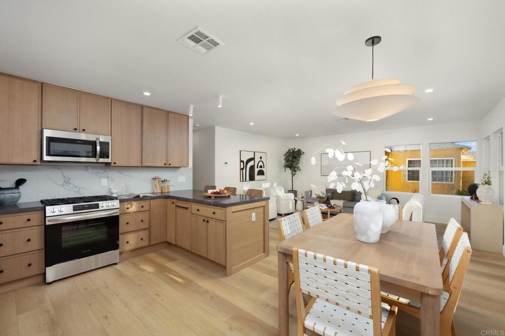 Beautifully reimagined residence offering refined design and thoughtful functionality in Culver West. The light-filled interior showcases wide-plank flooring, clean architectural lines, and a modern palette, creating an atmosphere that feels both elevated and inviting. A warm and stylish living room invites both relaxation and entertaining, flowing seamlessly through the dining area into a chef’s kitchen appointed with custom cabinetry, quartz countertops, and stainless steel appliances. The primary bedroom offers a peaceful retreat, while an additional bedroom provides flexibility for guests, a home office, or creative use. Completing the interior, the bathroom is beautifully finished with sleek fixtures, refined materials, and a calming, hotel-inspired aesthetic. Outdoors, a landscaped yard extends the living experience with mature greenery, curated plantings, and inviting space for entertaining or unwinding. Surrounded by local cafés, parks, and everyday conveniences, the property offers easy access to dining, shopping, and the 90 and 405 freeways. With luxurious finishes, cohesive design, and indoor–outdoor living, this exceptional residence presents elevated Culver City living.