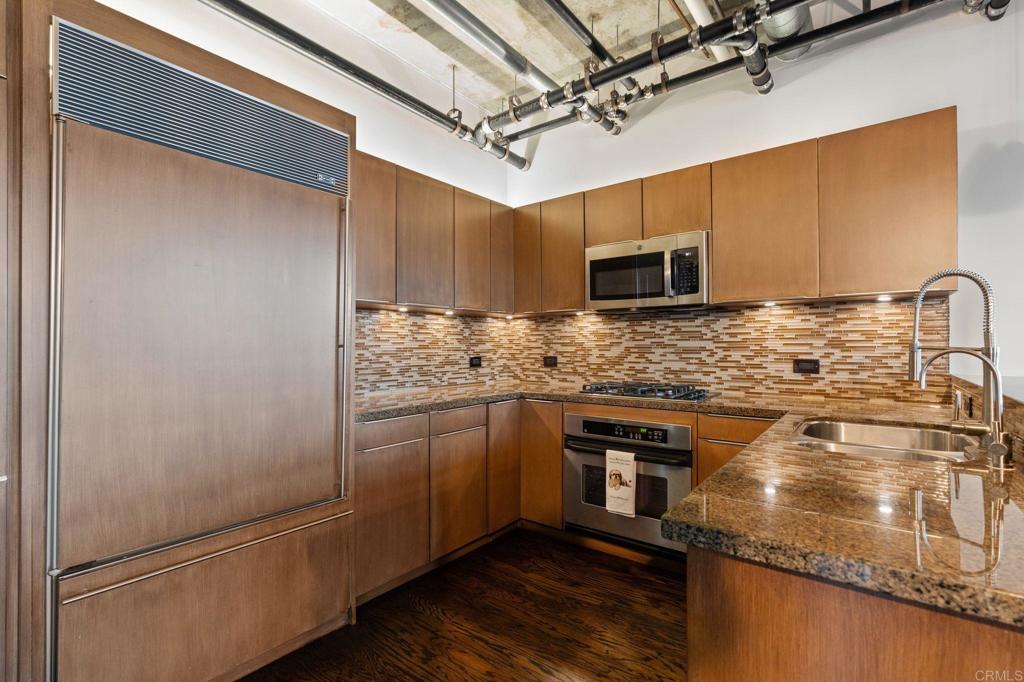 This LARGE Premier Parkloft residence features an expansive ~900 sq. ft. wrap-around balcony, creating a true extension of the living space and offering nearly 2,500 sq. ft. of combined indoor-outdoor living. Includes 2 side by side parking spaces, gym, and community center this building is rarely available! Located on the Northwest corner unit is ideal for entertaining — whether hosting friends before a Petco Park event or enjoying evenings beneath the glow of the city skyline. Inside, the open loft-style floor plan is highlighted by 10’6” ceilings, solid oak flooring, and thoughtfully curated custom upgrades throughout. The Studio Becker kitchen is both sleek and functional, featuring a gas range, new custom cabinetry with exceptional storage, and premium finishes. Additional highlights include in-unit washer and dryer, two 55” Sony OLED TVs, a built-in sound system, and custom lighting that sets the perfect ambiance. Exposed brick walls add warmth and character, while oversized windows seamlessly connect the interior to the outdoors. From the wrap-around balcony, enjoy live music drifting from nearby concerts or watch planes arrive from the east — all while double-pane windows provide a quiet, serene retreat indoors. Parkloft offers first-class amenities including two parking spaces, a 24/7 lobby attendant, fitness center, and a beautifully landscaped courtyard with BBQs — all located in the heart of East Village, just steps from Petco Park and the vibrant energy of Downtown San Diego. Please See AI edited photo for option to convert to a 1 Bedroom