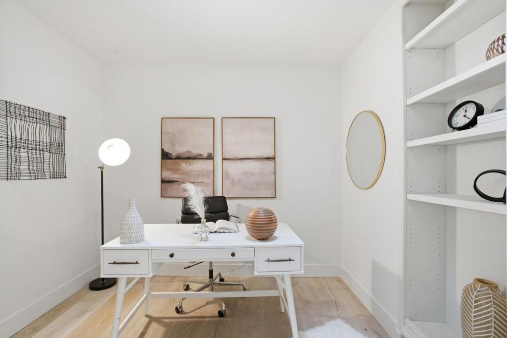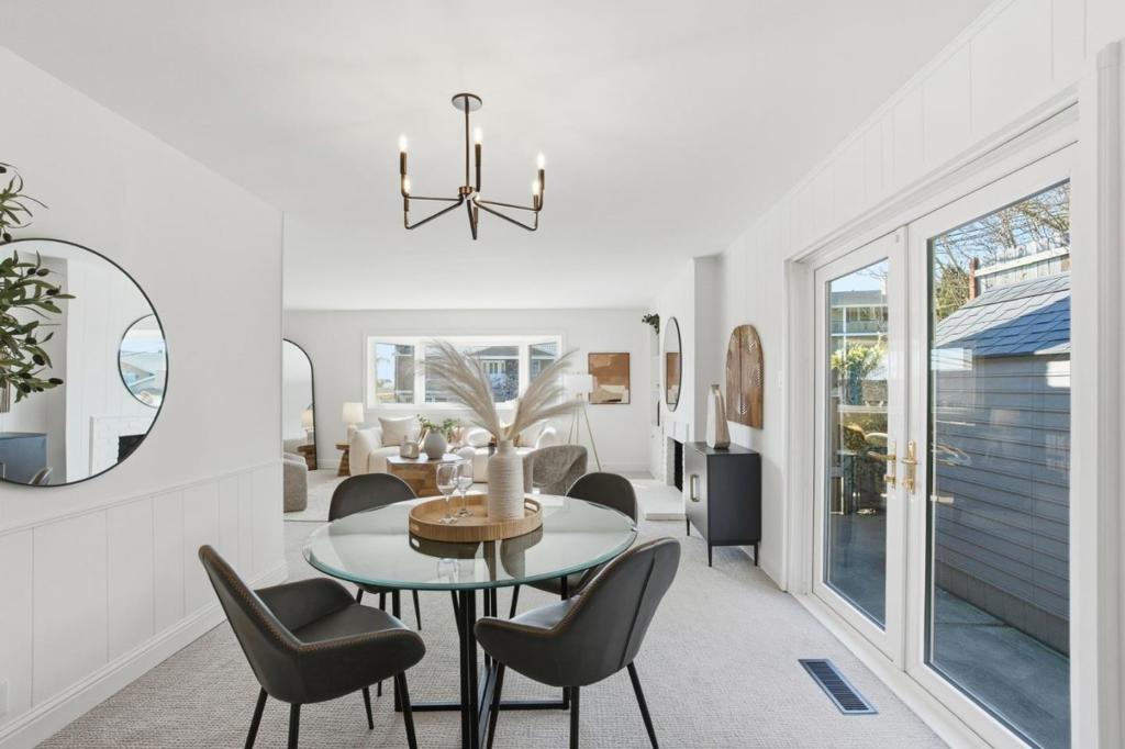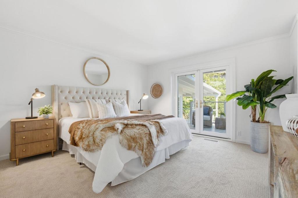 Tucked among mature trees with scenic Bay views, this beautifully designed 4-bedroom, 3-bath home offers a flexible multi-level floor plan, abundant natural light & exceptional indoor-outdoor living. The main level features an inviting living room with a charming wood-burning fireplace & cozy dining area. The kitchen opens to a spacious family room with multiple access doors leading to a generous outdoor deck perfect for entertaining and enjoying the tranquil views. Just a few steps up, the private bedroom wing includes a serene primary suite with ensuite bath & direct access to an outdoor deck, along with two additional bedrooms & a full bath. The lower level offers exceptional versatility with a private 4th bedroom and full bath, ideal for guests, multigenerational living or a home office. A few steps down, a large bonus room with fireplace provides the perfect space for a second family room, media room or home gym. This level opens to an expansive deck and a large, flat grassy backyard, surrounded by mature trees that create a peaceful, park-like setting. Oversized two-car garage with extra storage. Ideally located close to vibrant downtown San Carlos, parks, and top-rated schools, this home offers a rare combination of privacy, views, and flexible living. Welcome home!