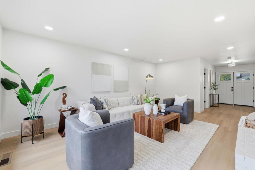 Welcome to this beautifully reimagined residence nestled on a cul-de-sac in a highly desirable location, This 4-bedroom, 2.5-bath home offers a refined floor plan designed for both everyday comfort & elevated indoor/outdoor entertaining. Thoughtful upgrades throughout include luxury vinyl flooring, quartz countertops, designer lighting, stainless steal appliances & fresh interior & exterior paint, creating a crisp, modern aesthetic. The inviting living room features a fireplace & flows seamlessly into the dining area with expansive windows & patio access. The chefs kitchen is superbly remodeled, showcasing a skylit center island with breakfast bar seating. Walk through beautiful French doors to the family room with vaulted ceilings & direct backyard access. The primary suite is a private retreat with an adjoining office or lounge space. The serene backyard is ideal for entertaining, featuring a pergola-covered dining patio with built-in barbecue, a dining pavilion, mature landscaping, fruit trees, & raised planter beds. Ideally located near parks, shopping, dining, major commute routes, & Silicon Valley tech campuses, this move-in-ready home offers modern luxury in an exceptional setting. Excellent Cupertino schools West Valley, Cupertino Middle, & Homestead (buyer to verify).