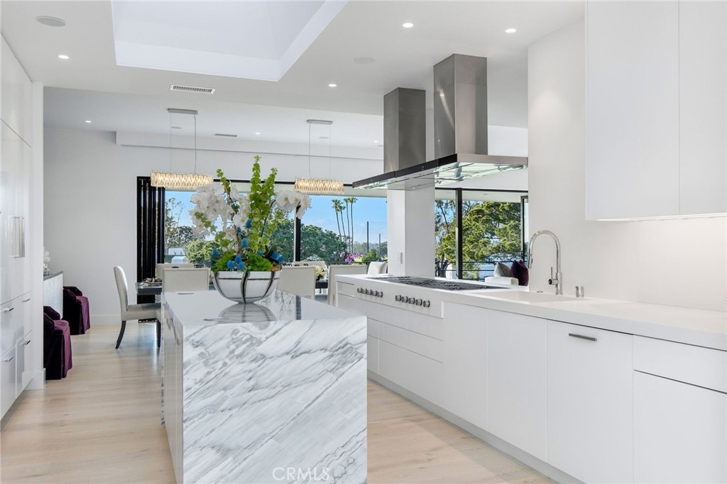 5 STEPS TO SINGLE LIVING -VIEW PROPERTY - GOLFERS DREAM HOME ON THE 9TH FAIRWAY of the NEWPORT BEACH COUNTRY CLUB - Unparalleled elegance and sophistication in this one-of-a-kind contemporary masterpiece in the prestigious Granville community of Newport Beach. Designed for the ultimate entertainer, this custom-built estate (completed in 2020) offers breathtaking 180-degree panoramic views of the 9th hole at Newport Beach Country Club, extending beyond to the Pacific Ocean and Catalina Island. Meticulously curated over two years, this home embodies entertainment luxury, seamlessly blending refined materials, state-of-the-art technology, and architectural brilliance. Every element has been crafted w/ an unwavering attention to detail, ensuring an ambiance of exclusivity and indulgence. The heart of this residence is its expansive OPEN-CONCEPT LIVING and DINING areas, featuring the NANO WALL SYSTEM, floor-to-ceiling glass doors that open to a sprawling 320+/- sq. ft. outdoor lounge. This home delivers a flawless indoor-outdoor experience complemented by awe-inspiring sunset vistas. CHEF'S DREAM KITCHEN - 10 burner gas cooktop by WOLF - Side by side SUB-ZERO refrigerators, 4 freezer & 4 additional fridge drawers by Sub-Zero - other WOLF appliances include double ovens, microwave, Steam Convection oven, built-in coffee station that includes a cup warming drawer WINE CONNOISSEUR'S HAVEN - the elevated wine room captivates w/ the ALABASTER BACKLIT WINE WALL - 200+/- bottles and 9 magnums LAVISH PRIMARY SUITE - A spacious sitting area w/private exterior access. A luxurious spa-like BR w/ a jet tub, expansive walk-in shower w/ stone slab walls, ambient lighting shower head and an expansive custom walk-in closet w/ a rolling ladder for elevated storage. SECONDARY SUITE - boasts a private entrance, designer stone finishes, STONE SLAB shower walls, counters, and sink. Built-in Cabinetry with stone countertop for extended storage - SMART HOME INNOVATION & Thoughtful Design - Fully Automated Smart Home system controlling locks, security cameras, lighting, HVAC, AUDIO, Shades and VISUAL equipment - Motorized 75-inch TV hidden above the LR fireplace - Garage w floor-to-ceiling cabinetry - Minutes from the ocean, Balboa Island, and Fashion Island’s world-class shopping and dining. An unparalleled opportunity to own a luxury entertainer’s dream in one of Newport Beach’s most coveted enclaves.