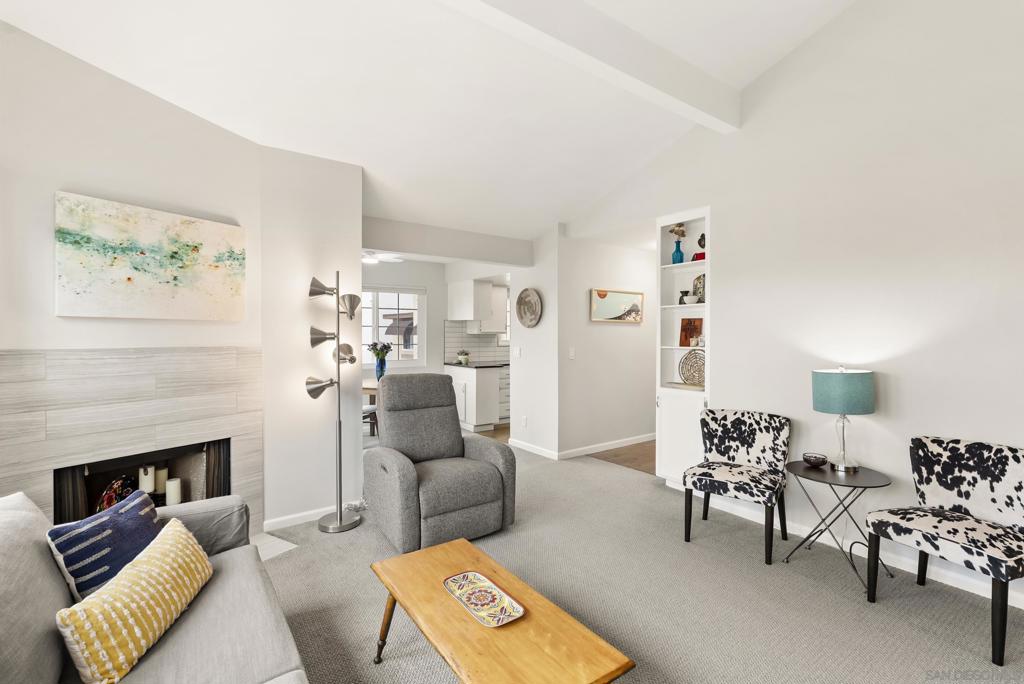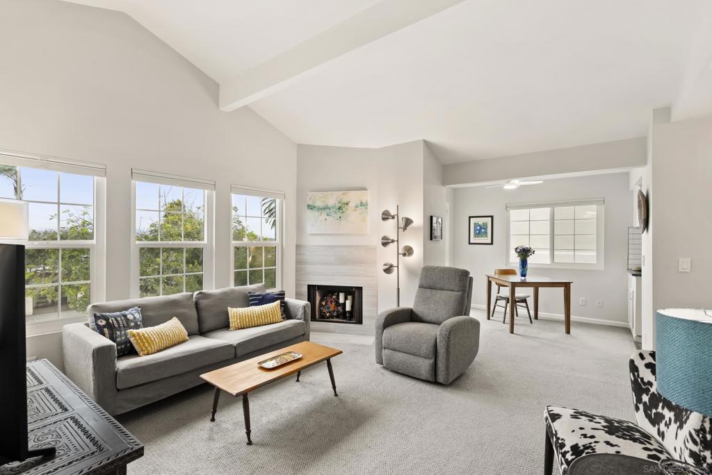 Private garage + driveway parking—check. Central heat & A/C—check. Walkable to everything—check. In-unit full-size W/D—check. Big views + big sunshine—check. End unit w/only one shared wall—check. Super clean and move-in ready—check. Dishwasher + fireplace—check and check. Welcome to your super-bright condo, with windows on three sides for cross-breezes, perched to capture spectacular easterly city and mountain views. Inside, soaring vaulted ceilings, dual-pane windows (on three sides!), and natural sunlight set the vibe. The modern kitchen is tastefully updated, the bath is fully remodeled, and the wood-burning fireplace brings cozy nights on demand. Step out to your private balcony for morning coffee or sunset glow. Practical perks? A private garage plus a driveway spot (no circling the block), central A/C, and full-size stacking laundry right where you want it—inside your home. Like being organized? There’s an extra-large custom bedroom closet (bi-fold wood doors with a flexible Elfa system). Location is the trifecta: moments to University Heights, Hillcrest, and North Park. With a 94 Walk Score™ (“Walker’s Paradise”), daily errands, cafés, gyms, groceries, and nightlife are a short stroll or bike ride away. Prefer wheels? You’ve got quick freeway access and nearby public transit. Meticulously maintained and truly move-in ready—just bring your boxes and start living. This condo has all you've been looking for in a 1 bedroom: Location, SUPER-clean, modern, superb walkability--explore Hillcrest, University Heights and North Park easily from your doorstep. Within a short distance you'll find the library, grocery/markets, popular eateries, services, shops, farmers market, post office, DMV, Trolley Barn Park, the new Hillcrest Pride Promenade (coming soon). Walk Score™ gives bikeability a score of 75! Take your bike just about anywhere; Normal Heights, Balboa Park & Zoo, Mission Hills, Bankers Hill and beyond.