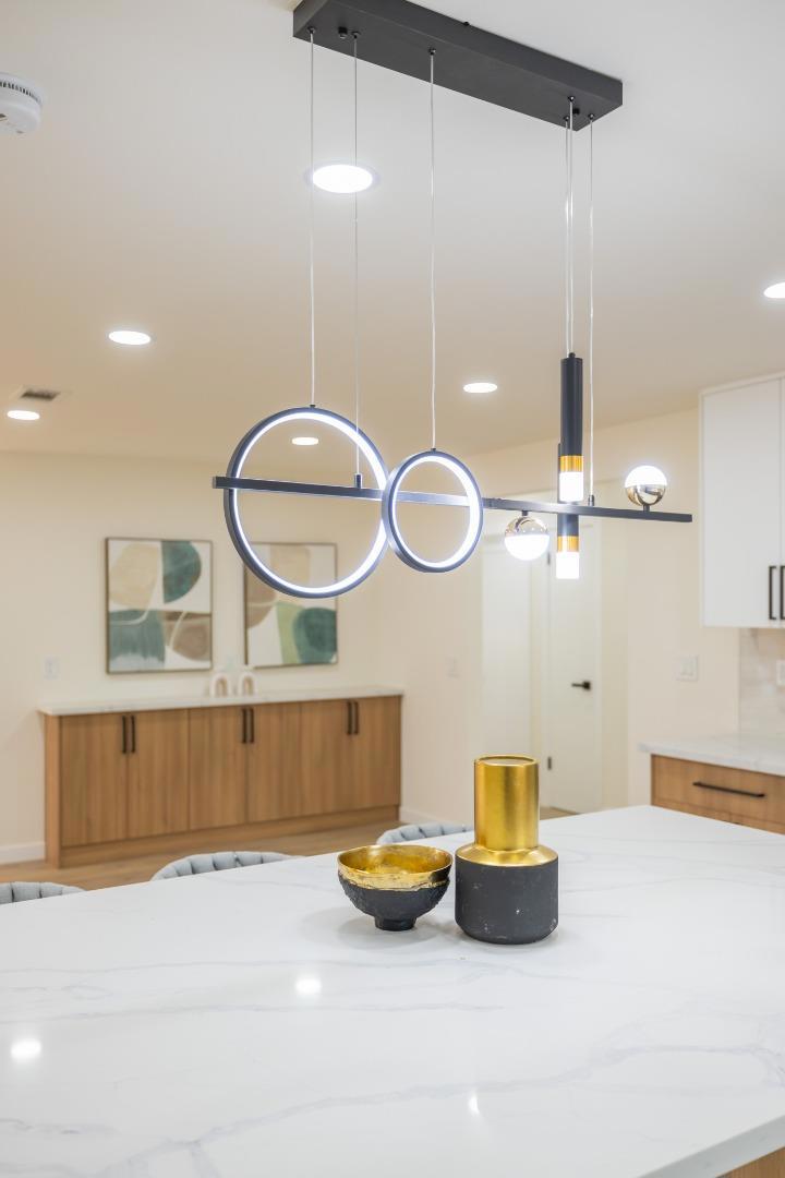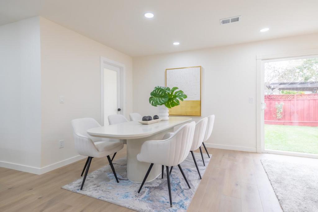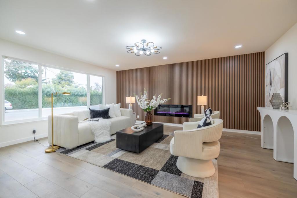 When modern elegance meets everyday functionality, this contemporary home shines in Campbells most desirable Pruneyard Dry Creek neighborhood, waiting for someone who appreciates style, comfort and convenience. Within walking distance to vibrant Pruneyard and downtown Campbell, this single level house boasts exceptional double en-suites, total 4 bedrooms and 3.5 bathrooms. Fresh cream color paint, luxurious wide plank laminate floor and designer LED light fixtures throughout offer a sleek and modern look for interior. Spacious formal living room has smart electric fireplace in the accent wall. Gourmet kitchen is a chef's delight, showcase European style fingerprint resistant cabinetry, center island, full splash and 5 burner gas stove. Open concept kitchen flows to the dining area and cozy family room. 3 full bathrooms stand out with chic tiled up showers, smart toilets with sensor, heating and cleaning function, fog-free LED vanity mirrors. Additional features include Nest thermostat. 200amp electric panel. Automatic iron gate encloses the wide side yard, possible for RV parking. Detached two-car garage has epoxy floor, LED lighting, 220v outlet for EV charging, it can used as gym, office or entertainment retreat. Come enjoy life in the neighborhood known for style and charm.