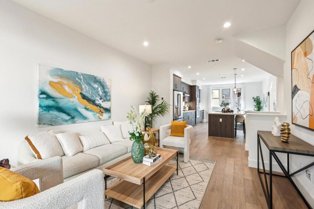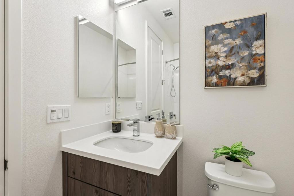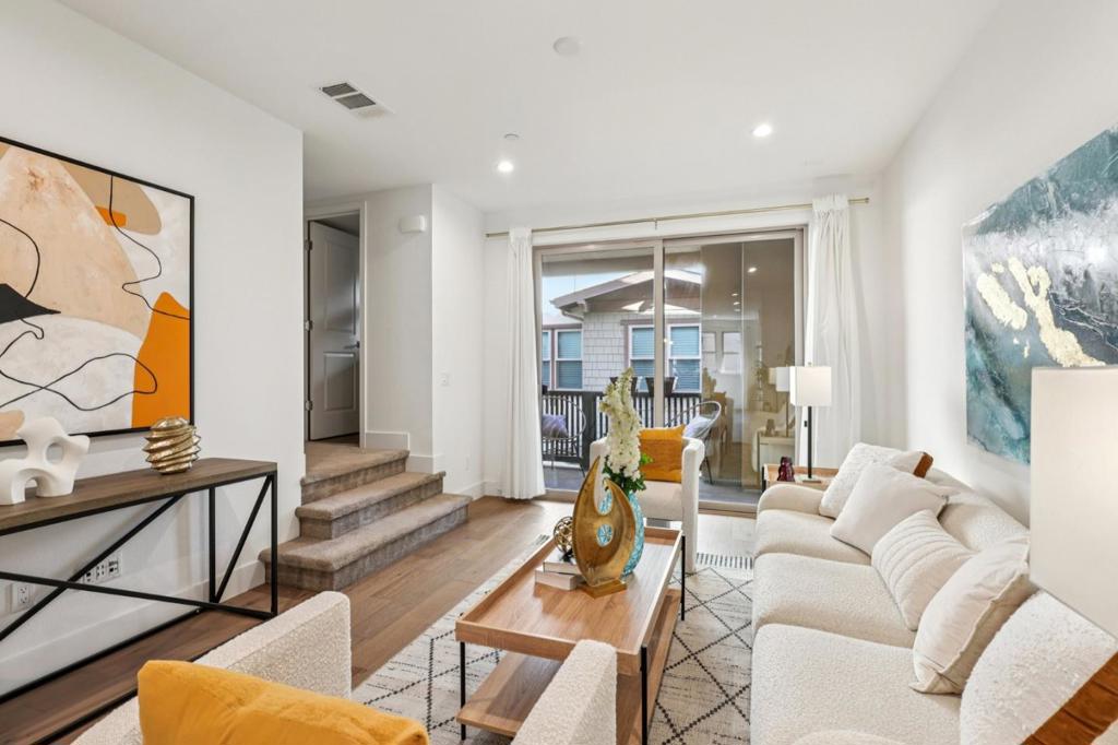 Nestled in a peaceful, tree-lined neighborhood in the heart of Mountain View, this stunning 2-bedroom, 2.5-bath PUD townhome by SummerHill Homes offers a perfect blend of modern comfort and prime location. The main level features an open, light-filled floor plan ideal for both everyday living and entertaining. A spacious living area opens to a private balcony, and the seamless flow into the contemporary kitchen creates an inviting gathering space. The kitchen is beautifully appointed with high-end appliances, quartz countertops, and ample cabinetry, making it a true chefs delight. Upstairs, the generous primary suite serves as a serene retreat with a large walk-in closet and a well-appointed bathroom featuring a dual-sink vanity. The secondary bedroom also includes its own en-suite bathroom, providing comfort and privacy for family members or guests. A convenient half bath on the main level adds to the homes thoughtful layout. Just minutes from vibrant downtown Mountain View, with easy access to shopping, dining, parks, hiking trails, and top-rated Los Altos schools. Quick connections to Highways 101 and 85, commuting to major tech campuses such as Google and Meta is effortless. This exceptional townhome combines comfort, convenience, and an unbeatable Silicon Valley lifestyle!