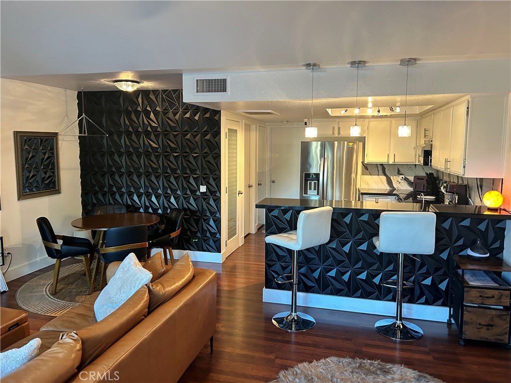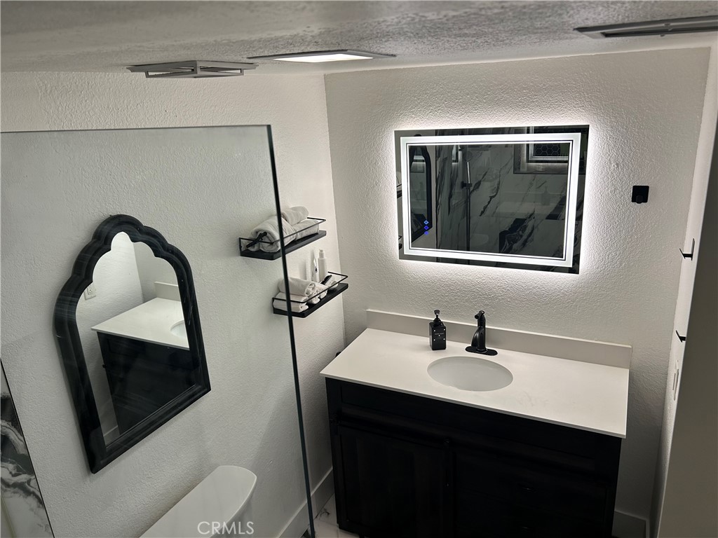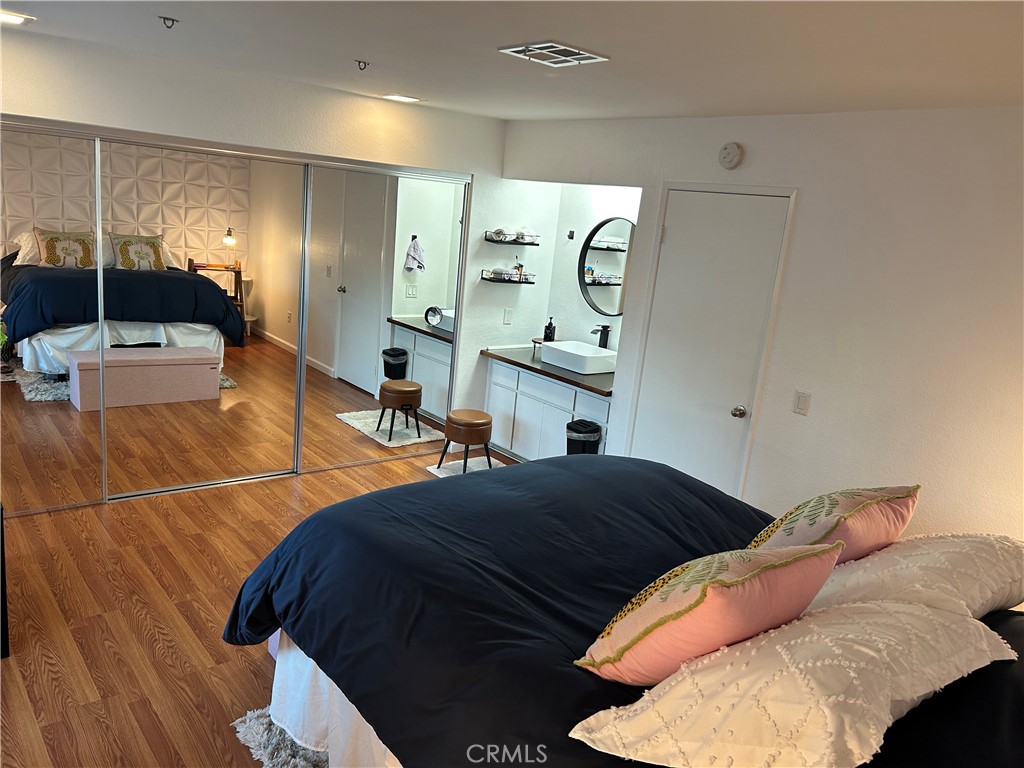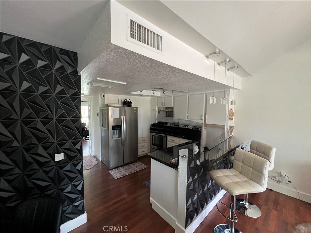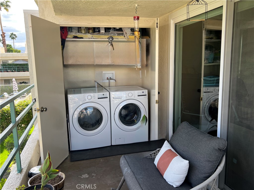 Welcome to Candlewood Villas I, a fee simple community (not on leased land). This upgraded, extra-large one-bedroom, one-bath end unit offers comfort, style, and privacy. Enter into a spacious living area featuring vaulted ceilings that create an open, airy feel. The bedroom suite includes an additional vanity and sink, adding both convenience and functionality. A front patio slider showcases mountain and sunset views, while the rear patio provides a private space perfect for relaxing or entertaining. The open kitchen is well-appointed with stainless steel appliances, black granite countertops, and modern white cabinetry. The beautifully upgraded bathroom features a walk-in shower, updated toilet, and contemporary vanity. As an end unit with only one shared wall, this home offers enhanced privacy. Your assigned parking space is conveniently located just steps away at the base of the stairs. Additional highlights include a gated entrance off Candlewood and access to the community pool and jacuzzi. A wonderful opportunity to enjoy comfort, convenience, and scenic desert living.