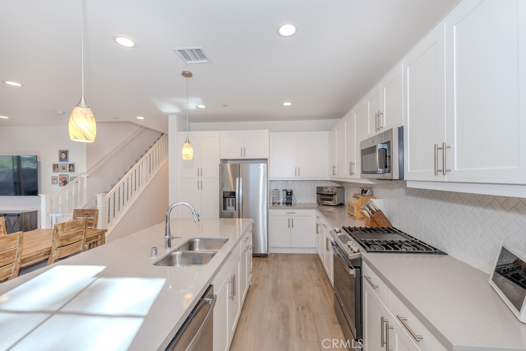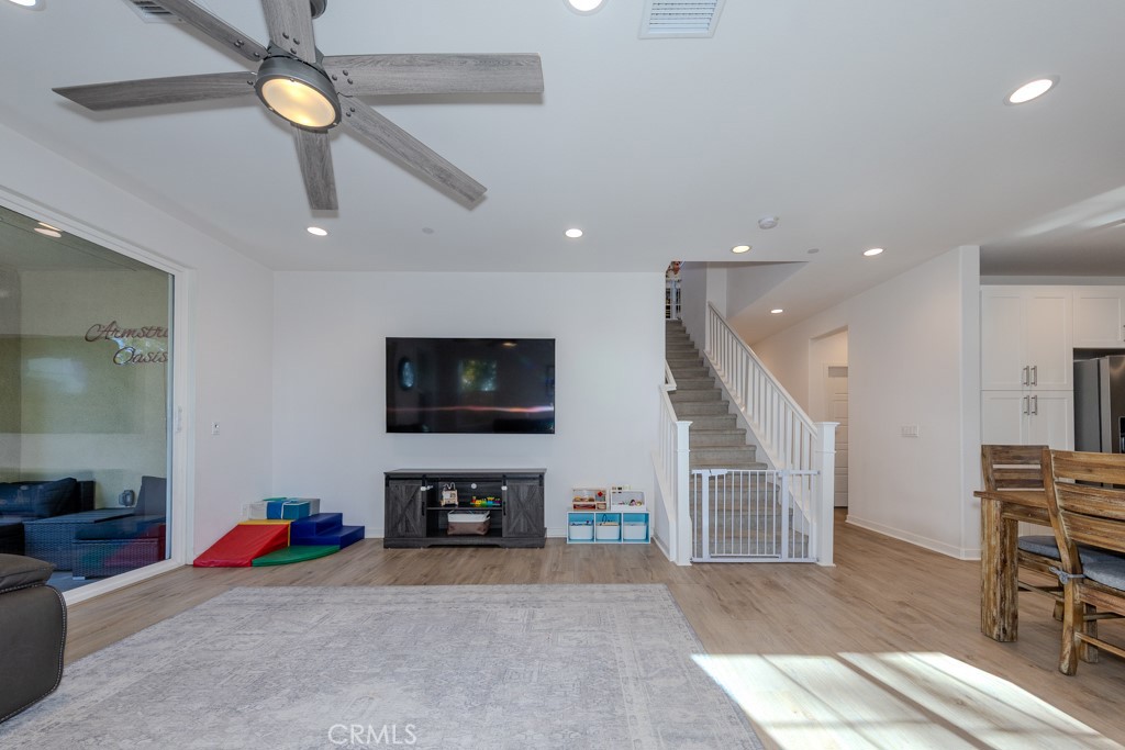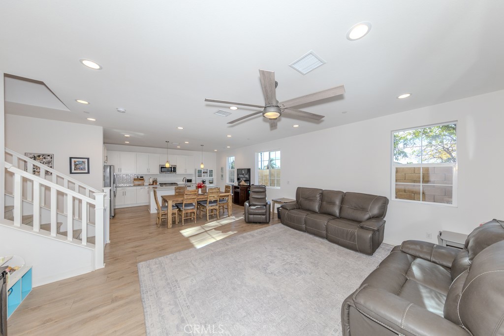 Beautifully upgraded and move-in ready, this spacious 4 bedroom, 3 bathroom home offers nearly 2,290 square feet of modern living built in 2022 within a desirable gated community in North Fontana. The open-concept main level features laminate flooring throughout the entry, kitchen, and living areas, creating a seamless and stylish flow perfect for both everyday living and entertaining. The chef’s kitchen is appointed with quartz countertops, ample cabinetry, and generous prep space. A downstairs bedroom and full bathroom provide ideal flexibility for guests, extended family, or multi-generational living. Upstairs, you’ll find a versatile loft area perfect for a secondary family room, media space, or home office. The convenient upstairs laundry room adds everyday ease. The spacious primary suite includes a well-appointed bathroom with dual sinks and modern finishes, while the secondary upstairs bathroom also features double sinks—perfect for busy households. Comfortable carpeted bedrooms create inviting private retreats. Residents enjoy resort-style community amenities including a pool, spa, clubhouse, park, BBQ areas, and more. Ideally located near Victoria Gardens shopping and dining, and within the highly regarded Etiwanda School District and Chaffey Joint Union High School District, known for award-winning schools. A newer home with space, style, and community perks — this one checks all the boxes.