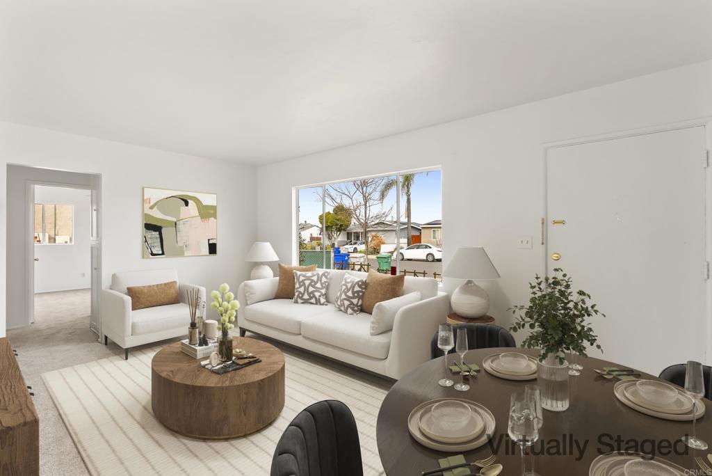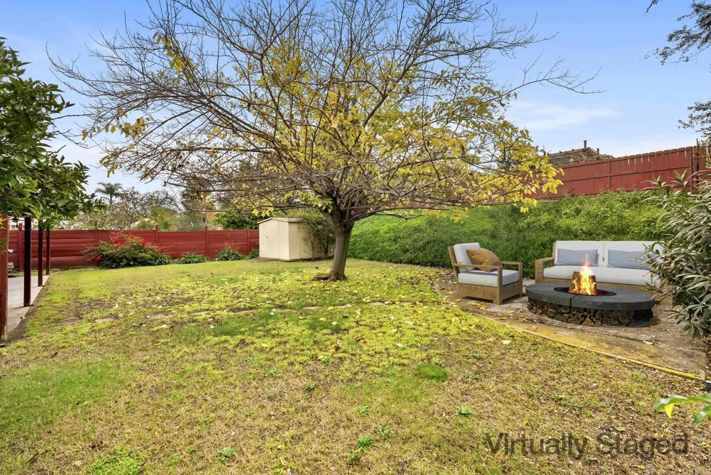 Fabulous opportunity in Rolando Park! This charming single-level starter home features a large backyard on a peaceful, centrally located street close to shopping, restaurants, Joan Kroc community center, elementary school, freeways, and SDSU. The cute 3BR/1BA home is light and bright with fresh paint and new carpet, with original hardwood floors underneath, ready for you to make it your own. Enjoy true indoor/outdoor living with a kitchen that opens to a spacious covered patio and expansive backyard—perfect for entertaining friends or savoring your morning coffee in privacy. With ample space to expand or add an ADU, this property offers endless potential in a highly desirable and well maintained neighborhood. (Note that photos have been digitally staged with furniture to illustrate layout. There is no actual furniture in the property.)