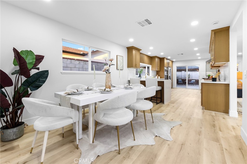 Welcome to this exquisitely crafted single-level, 4-bedroom, 2-bathroom single-family residence, thoughtfully redesigned and fully renovated throughout. Every detail has been meticulously refined to seamlessly blend contemporary aesthetics with premium, luxurious materials. The chef-inspired kitchen features custom oak cabinetry, sleek modern countertops, and a curated selection of upscale finishes—enhancing both visual appeal and everyday functionality. A spacious two-car garage is finished with an epoxy-coated floor, delivering a clean, showroom-quality appearance. From interior to exterior, this home achieves a perfect balance of luxury, comfort, and modern sophistication, offering a truly move-in-ready experience that captivates at first sight. Step into the backyard to discover your own private, resort-style oasis, complete with a sparkling pool—ideal for both relaxation and entertaining, allowing you to enjoy a vacation-like lifestyle without ever leaving home. Situated in one of Placentia’s most sought-after communities and within a highly regarded school district, this home seamlessly combines elevated living, neighborhood charm, and exceptional educational opportunities. More than just a home, this is a lifestyle—where timeless design meets modern living.