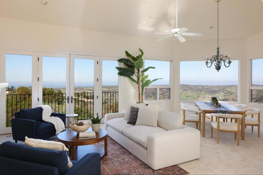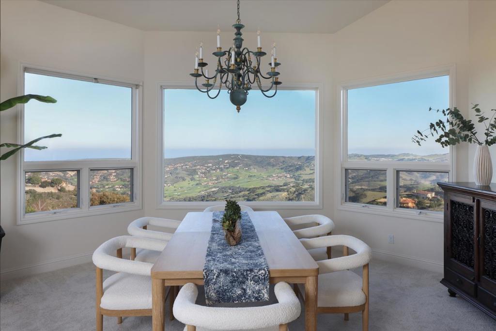 Located within the private, gated community of Halcyon Heights, this stunning Mediterranean-style residence commands breathtaking panoramic views of Monterey Bay, Pasadera Golf Course, and the majestic Santa Lucia Mountains. Offering a serene yet luxurious retreat just minutes from all the exceptional amenities the Peninsula has to offer, the 4,000+ sq ft home is thoughtfully designed for seamless living and entertaining. The open floor plan flows effortlessly between the gourmet kitchen, elegant indoor/outdoor living spaces, and four spacious ensuite bedrooms, all oriented around an idyllic pool and expansive patio where the views take center stage. Additional highlights include a grand living room with fireplace, formal dining room, marble flooring throughout, air conditioning, and a three-car garage equipped with a Tesla/EV charger. Set on approximately six acres, the property provides privacy, space, and endless possibilities. Ideal for hosting friends and family and enjoying the abundance of nearby activities, this Monterey paradise is ready to welcome its next owners. Recent improvements by the current owners include a new deck, updated doors and windows, fresh exterior paint, and more, ensuring the home is move-in ready and beautifully maintained.