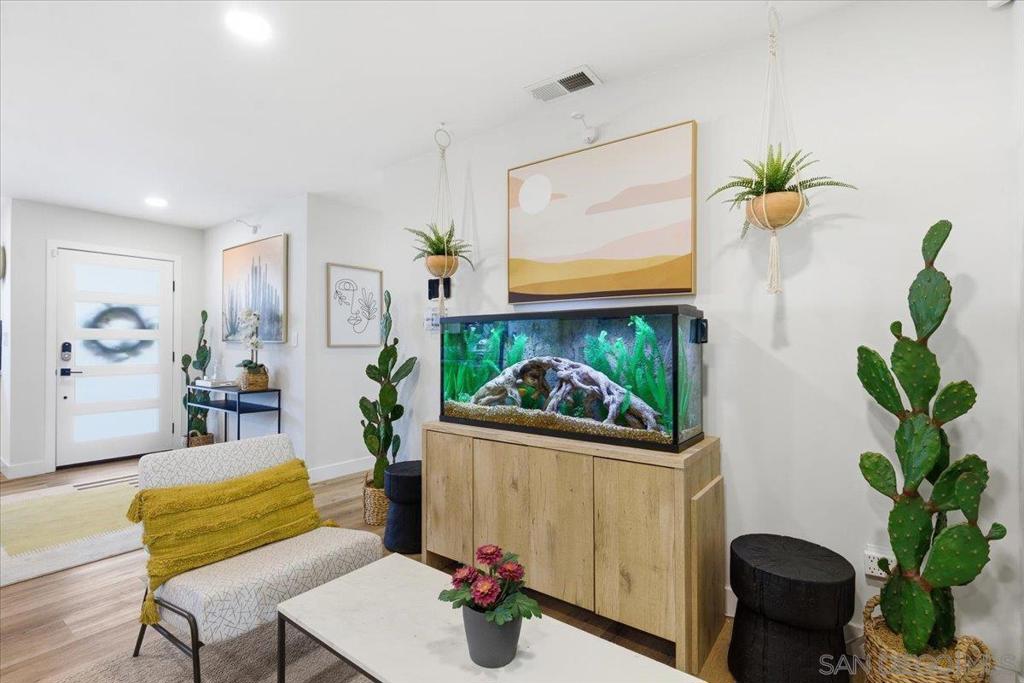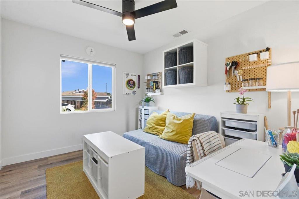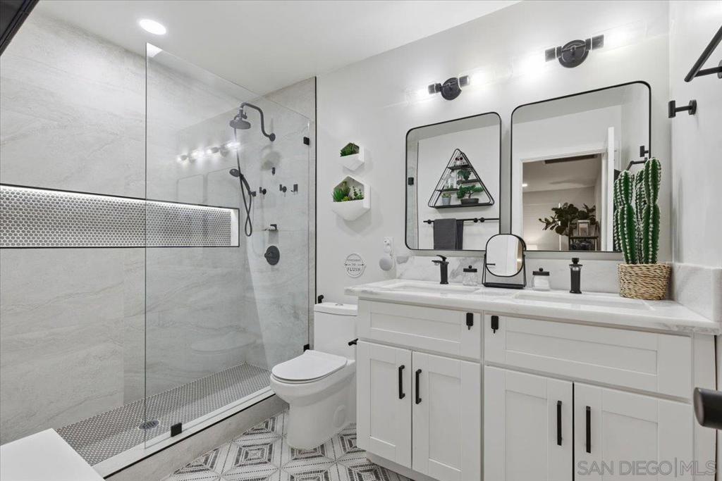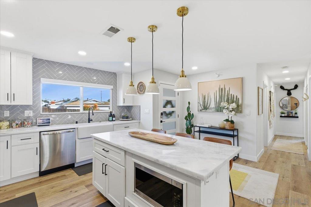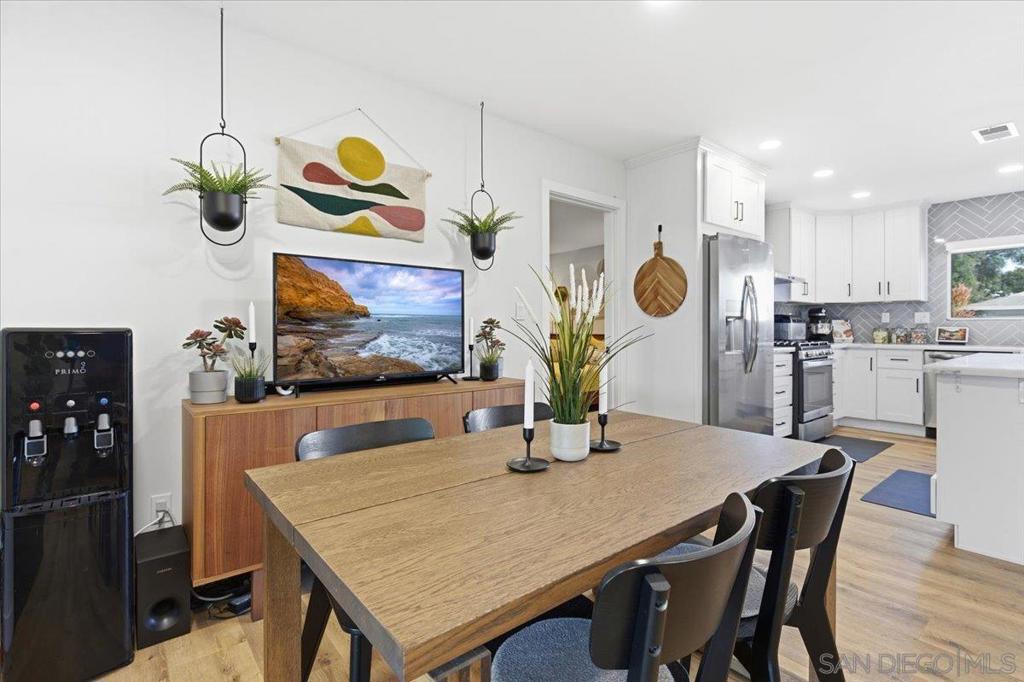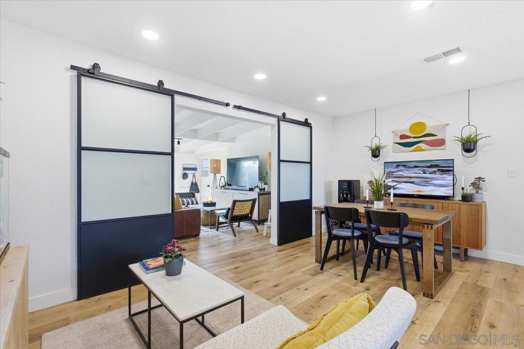 Beautifully upgraded single-story 5BR/3BA smart home with solar and EV charging in a prime Santee location! The modern open layout features a redesigned kitchen with quartz Namib Fantasy countertops, stainless steel appliances, and bright, spacious living areas. Bathrooms have been refreshed with designer finishes throughout. Step outside to an entertainer’s dream backyard featuring a large pergola, outdoor kitchen, built-in firepit, and manicured landscaping. The property also includes a bonus room currently used as an office/guest space, along with a detached flex space currently used as a home gym - offering versatile options for today’s lifestyles. Energy-efficient, turnkey, and thoughtfully updated, this home stands out for its style, functionality, generous layout, and exceptional indoor-outdoor living.