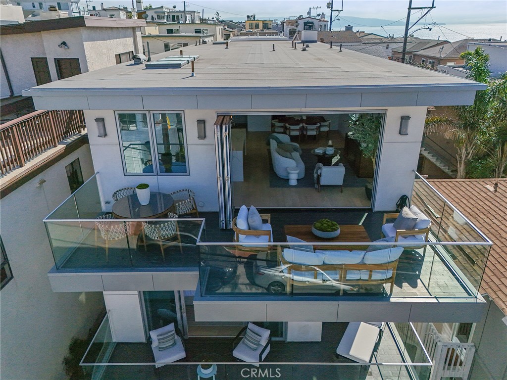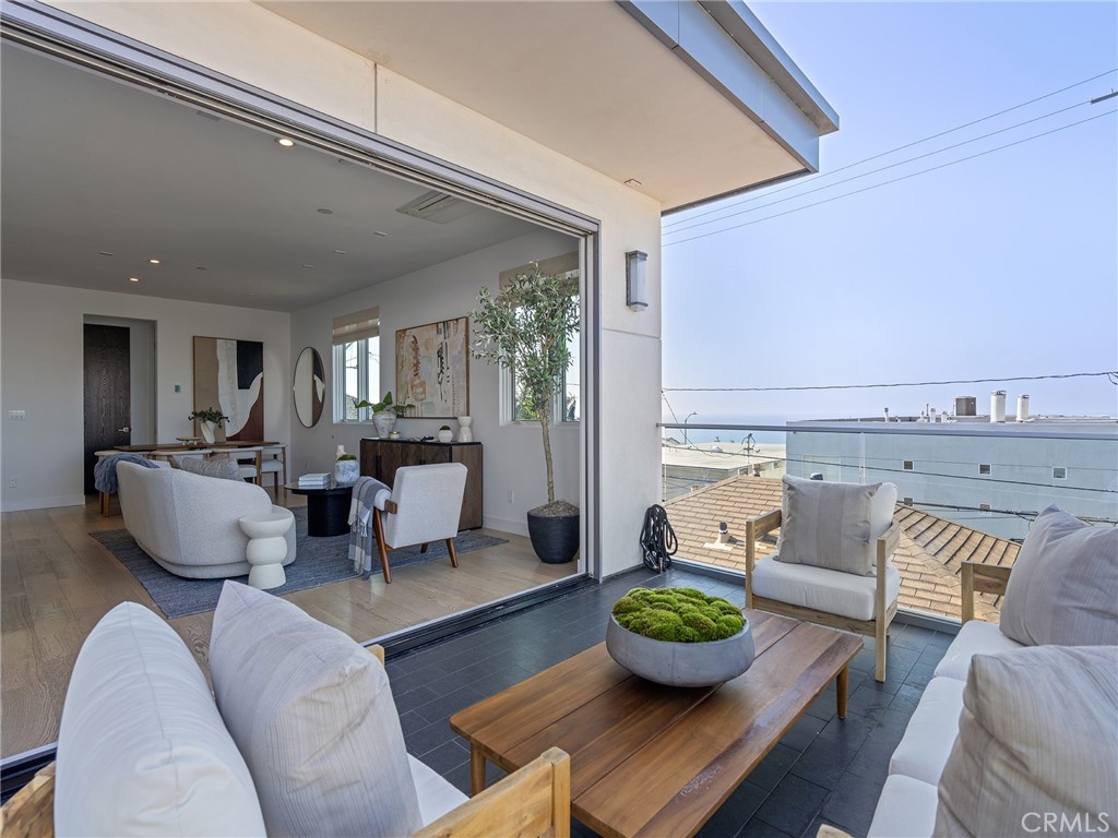 Experience captivating ocean views of the majestic Pacific Ocean and vast sky above unfolding throughout the day in movement from the comfort of your own home. Entertain with ease as you slide open your wall of glass doors to enjoy the expansive indoor-outdoor living with over 450 square feet of ocean view balconies seamlessly adjoining your open concept living level. Just three blocks from the beach and steps from beloved restaurants, coffee houses and spas in the heart of Manhattan Beach’s vibrant north end, this like-new, modern style townhome offers the dream coastal lifestyle you’ve earned. Leave your car charging in the garage all weekend long and get the flip flops out. Views with sophisticated style. Privacy with proximity. Security with space, for loved ones or hobbies or both. Come in from the beach, shower off, and prepare dinner as the sunset enchants everyone lounging around the kitchen island, full of top-of-the-line Thermador appliances. Step out from the living room to BBQ as you watch the sun dip below the horizon. Every bedroom enjoys its’ own bathroom. The lower level fourth bedroom suite is so spacious it could be used as a man cave, guest bedroom or bonus living room with an office. This home has been so impeccably maintained it is the definition of turnkey for those with a demanding job or busy schedule; just bring your toothbrush. You’re also positioned for the shortest commute in the city to the Westside and all points north. This property is an ideal retreat for those with an active lifestyle seeking a newer construction home with ocean views, year-round indoor-outdoor living and immediate access to everything Manhattan Beach has to offer.