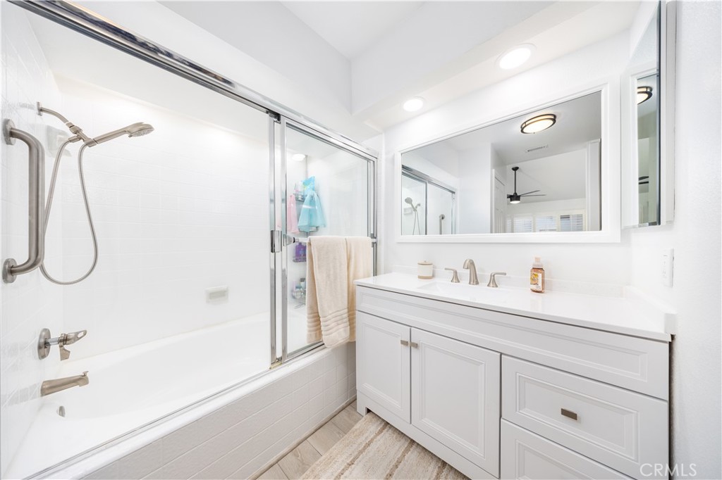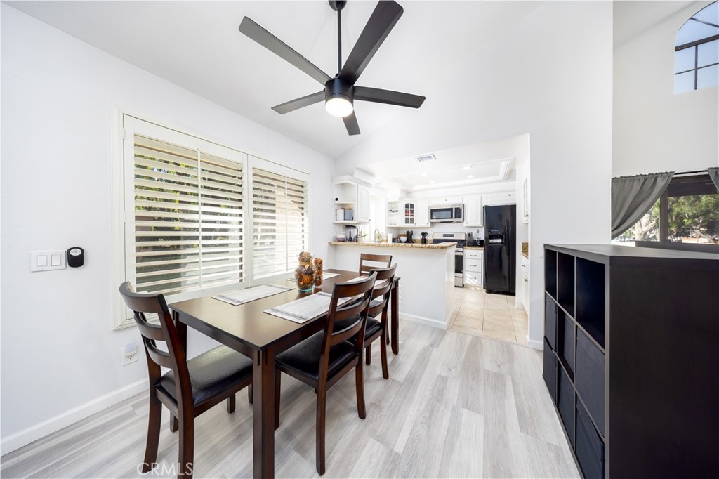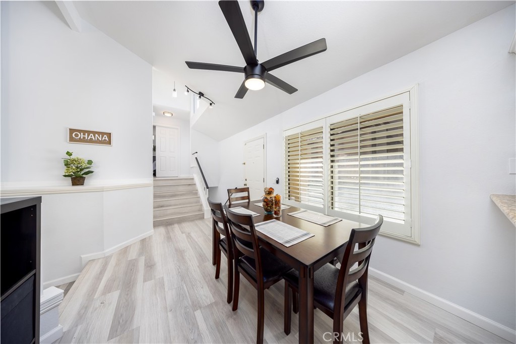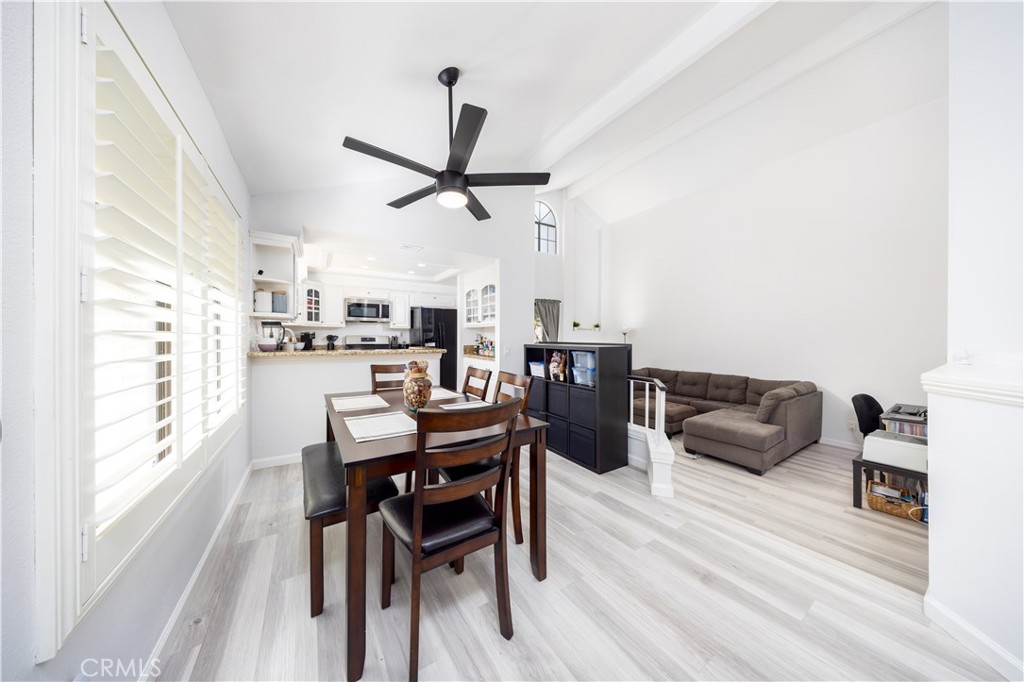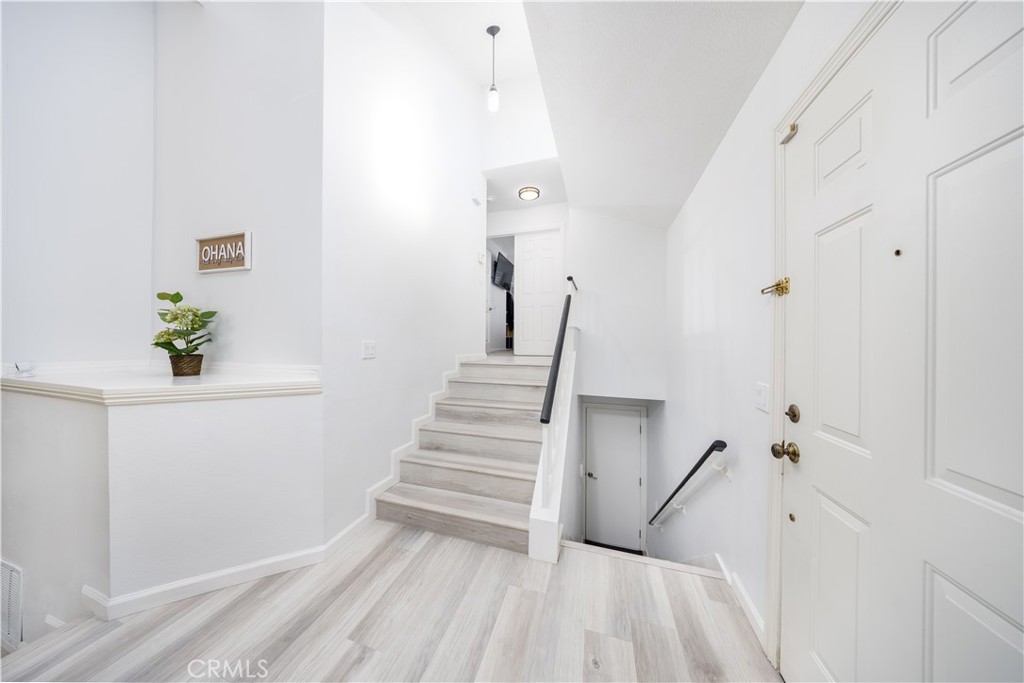 Beautifully upgraded 2-bedroom, 2-bathroom home featuring a dramatic double-height living room filled with natural light. The open-concept layout seamlessly connects the kitchen, dining area, and living room, creating an ideal space for both everyday living and entertaining. Extensive improvements from 2023–2026 include popcorn ceiling removal, fresh interior and garage paint, new baseboards throughout, upgraded flooring, and modernized lighting and fixtures. Pergo flooring enhances the living areas and stairs, while bathrooms feature vinyl plank flooring and bedrooms offer pet-resistant carpet with premium padding. Both bathrooms have updated vanities, mirrors, toilets, and reglazed tubs. Major system upgrades include a replaced electrical panel, updated outlets and switches, upgraded HVAC system with new ducting and Nest thermostat, water softener, and water purifier. Additional highlights include vinyl shutters in bedrooms, custom closet shelving, smart garage door motor with MyQ technology, built-in shelving in the primary bath and garage, wall-mount TV outlets in both bedrooms, frosted high windows for added privacy, and a pet-resistant screen door. The current owner has invested exceptional care, love, and thoughtful attention to detail into every upgrade, creating a home that is both stylish and highly functional. HOA amenities include fire insurance coverage and water, gated community access, two pools, two spas/jacuzzis, clubhouse, BBQ areas, and exterior and grounds maintenance, offering true low-maintenance, resort-style living. Move-in ready with pride of ownership evident throughout.