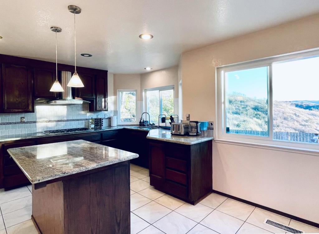 This beautifully maintained Glen Cove home offers privacy with no rear neighbors and stunning views of rolling hills with the Carquinez Bridge in the distance. Enjoy morning coffee or evening relaxation on the covered deck or backyard patio, perfect for taking in the scenery. Inside, the home features a sunken living room, formal dining room, and a spacious kitchen with granite countertops, stainless steel appliances, and an eating area with views. The expansive family room includes a fireplace, wet bar, and access to a downstairs full bathroom and laundry area. All four bedrooms and two full bathrooms are located upstairs, offering a functional and comfortable layout. The low-maintenance front yard and three-car attached garage provide excellent convenience and storage. Ideally located near parks, trails, shopping, and easy freeway access.