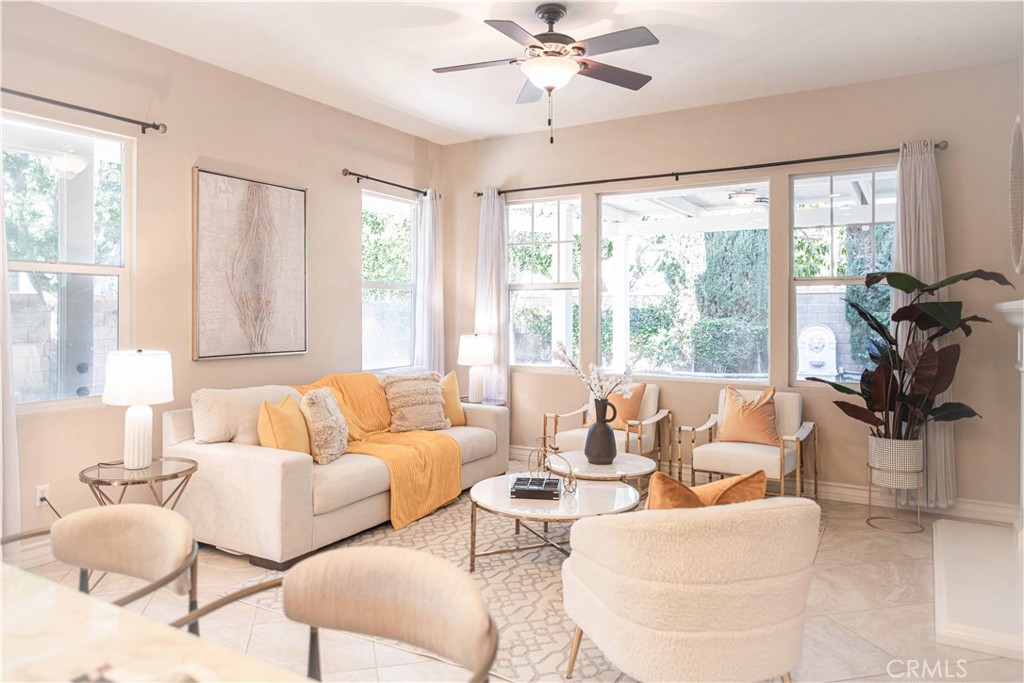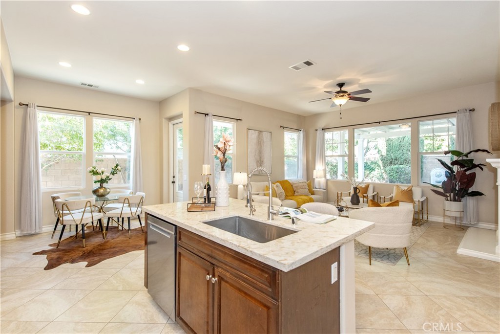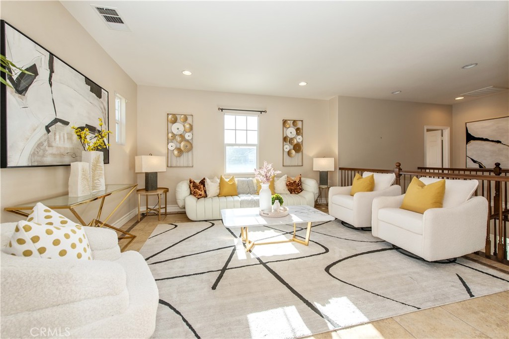 This elegant Madison Plan 2 residence in Columbus Grove offers a refined and upscale living experience with exceptional attention to detail throughout. The home has just been freshly painted with a full exterior repaint and partial interior updates, and is tucked away at the end of a quiet cul-de-sac, providing both privacy and a serene setting. The home features a bright and spacious open floor plan with 5 bedrooms and 4 bathrooms, including a main-floor bedroom with a 3/4 bath, ideal for guests or multi-generational living. The layout is thoughtfully designed for comfort, functionality, and everyday living. Upgraded hard-surface flooring with tasteful decorative details and neutral tones enhances the home’s upscale feel. The open kitchen is equipped with stainless steel appliances, ample cabinetry, a generous center island, and granite countertops, perfect for both daily use and entertaining. Upstairs, the luxurious and comfortable primary suite offers a large private balcony, a separate soaking tub and walk-in shower, and a spacious walk-in closet. The primary bathroom also features granite countertops. In addition, the second floor includes three additional bedrooms, two full bathrooms, a large open loft ideal for a family room or entertainment space, and a full laundry room with sink. The beautifully landscaped backyard features pavers and a designated outdoor BBQ preparation area, creating an inviting space for kids’ playtime and gatherings with family and friends. Additional highlights include a 3-car attached garage and a long driveway offering convenient parking. Residents enjoy access to community amenities including a large heated pool and relaxing spa. Zoned to the award-winning Irvine Unified School District. Ideally located near The District, Diamond Plaza, Tustin Marketplace, 99 Ranch Market, parks, and recreation centers, with easy access to the 5, 405, 261, and 133 freeways. A rare opportunity not to be missed.