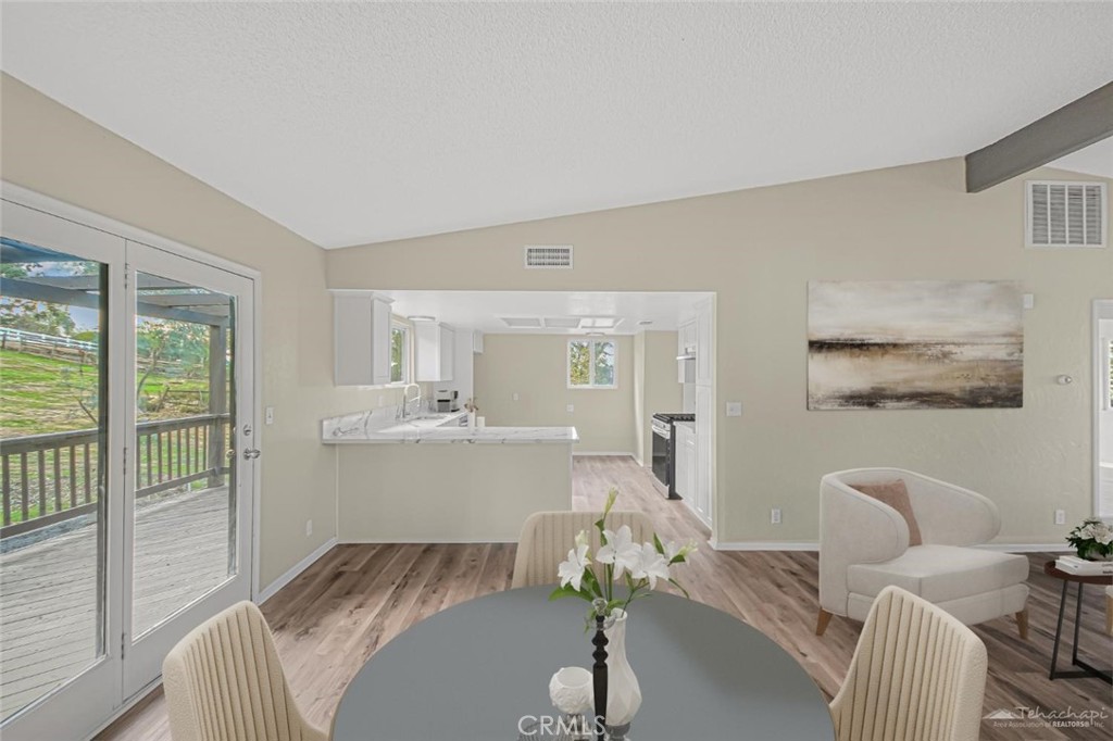 New interior and exterior paint give this Stallion Springs home a fresh, clean look right from the start, setting the tone for a fully renovated interior. The kitchen is completely newbrand-new cabinets, new countertops, all-new stainless steel appliances, a new sink, and a new faucetdelivering a true move-in-ready space. Brand-new plank flooring spans the main areas, while new carpet adds comfort to the bedrooms. Updated plumbing fixtures and new light fixtures finish the remodel. The layout includes a primary suite downstairs, a secondary bedroom downstairs, and a loft/bedroom upstairs with its own balcony that captures the kind of million-dollar views Stallion Springs is famous for. A formal dining area and a comfortable living area make the home easy to enjoy. Outside, you'll find wrap-around decking with sweeping views in every direction, a fenced property, a barn, an oversized 2-car garage, and a cleaned-up lot ready for your plans. Located in beautiful, highly desirable Stallion Springs, this home sits in one of the most sought-after spots in the entire Tehachapi area. Come see this rare offering before someone else does.