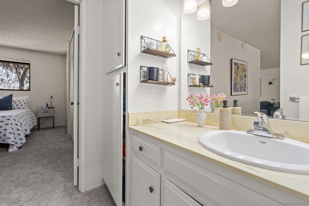 XXL size condo top-floor condo with tranquil park-like views of the private balcony. This open-concept home offers a spacious living room, dining area, breakfast bar, and open kitchen. Generously sized bedroom, creating a bright and airy feel throughout. Pool area for entertaining. Tucked away at the end of a quiet cul-de-sac, it provides the perfect blend of privacy and convenience. Enjoy close proximity to the bay, beaches, shopping, Pacific Beach restaurants and nightlife, Kate Sessions Park, and easy access to the 5 freeway—ideal for commuting to UCSD or USD. The community offers plentiful guest parking, plus secure underground gated parking with a private storage cabinet. Located in the desirable Pacific Woodlands complex. VA approved.