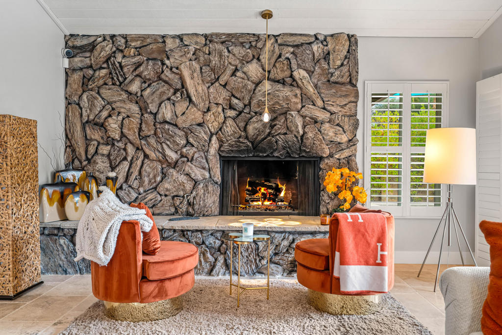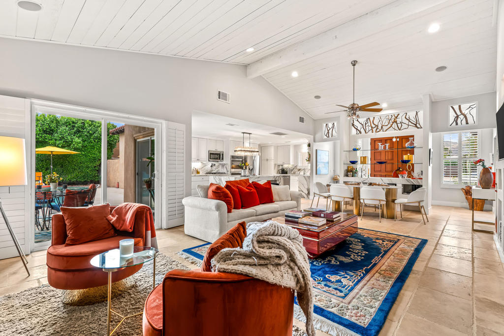Unbeatable location--truly the best in town. Walk to the Indian Wells Shopping Village, enjoy world class bike routes just down the street, and reach El Paseo, Washington Charter School, and the renowned BNP Paribas Open in minutes. Quiet, safe, with no unsightly overhead cables (all utilities are underground) and no HOA.This residence underwent a comprehensive renovation in 2025, guided by a clear design philosophy: openness, light, and effortless livability.The completely opened kitchen now anchors the great room as a true gathering hub. Porcelain countertops deliver refined durability and a clean, architectural presence.. All-new appliances, under warranty, include: double oven, double-door refrigerator, microwave, and dryer. Pots, pans, dishes, glasses--everything stays, making the kitchen fully move in ready. The result is a space that feels timeless, integrated, and perfect for both daily living and entertaining.All bathrooms have been fully updated: The second bathroom was smartly reconfigured for improved flow and functionality. The second tub open to one of the bedrooms and at the same time private adds to the spa feel of the whole house. The third bathroom doubles conveniently as a pool bath and sits adjacent to a never used sauna.The home is offered furnished per seller's inventory, with cohesive selections that enhance the architecture and natural flow of the space. A buyer need only bring personal items.Additional Interior Upgrades include Travertine flooring, High quality interior paint., New doors and molding, New garage door, New ceiling fans throughout,Desert living shines in the highly upgraded outdoor area too. With all electrical lines underground, the surroundings remain clean and unobstructed. The pool features a shallow children's area plus a spa. The covered patio recently expanded--doubled in size-- is perfect for barbecues and outdoor gatherings.