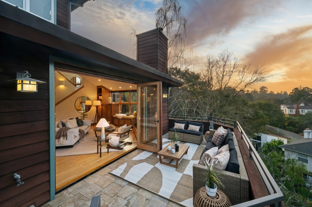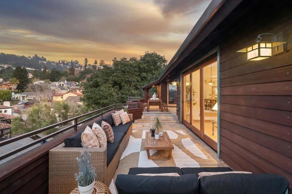 Extraordinary living awaits in this elegant 3+BD/2.5BA contemporary redwood home in coveted Glen Highlands, offering the ease of newer construction with breath-taking amenities. Behind a private gate, the home’s garden sanctuary welcomes you with the sound of an enchanting waterfall and multiple seating areas. Double glass doors open into a spacious 2966 SqFt open floorplan with cathedral ceilings. While family and friends gather around, cook in the chef’s kitchen boasting two sinks, Sub-Zero, wine fridge, and Gaggenau 6-burner stove. The adjoining living and dining areas have built-in window seating and glass doors to a wide deck for easy indoor/outdoor living. A wall of windows make the East Bay hills your backdrop. Upstairs find the primary suite: a private, sun-filled Zen retreat with walk-in closet, built-in dressers, and huge split bath with a shower room, soaking tub and double vanity. Two more bedrooms occupy the lower level, along with a stylish large bath, laundry, storage/bonus room, and den with French doors onto another deck. Outside, a deep, professionally landscaped yard features a recently installed fruit orchard and seating area. Solar panels top a 2-car garage. Down the road, enjoy Montclair Village, Rockridge amenities, BART, and regional parks.