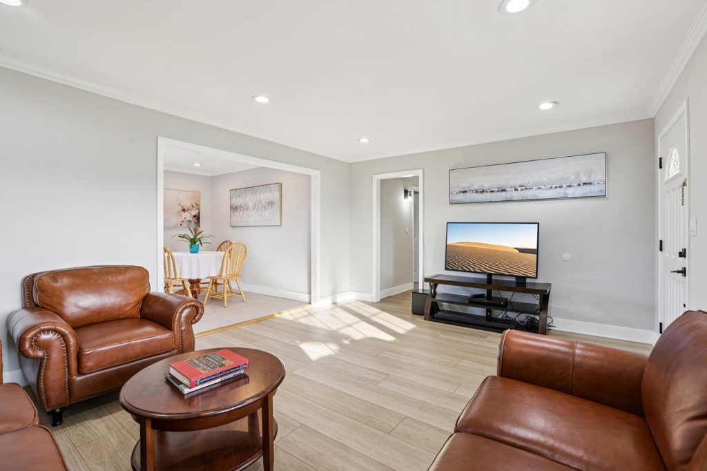 Welcome to this thoughtfully upgraded single-story residence, perfectly positioned on a generous corner lot. Designed for effortless living, the home boasts an exceptional floor plan enhanced by a newer roof, elegant flooring, skylights, fresh paint, garage door, and stylishly renovated kitchen and bathrooms. Every upgrade reflects quality craftsmanship and timeless sophistication, creating a bright, inviting space ready for its next owner’s personal touch. Ideally located within walking distance to all schools, this home offers comfort, convenience, and lasting value. A rare opportunity—schedule your showing today.