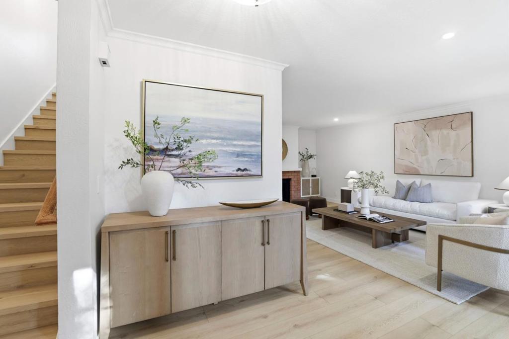 Discover comfort, convenience, and charm in this thoughtfully designed 2-bedroom, 2.5-bathroom townhome with a spacious bonus room. Step inside to discover thoughtfully curated upgrades, including stylish recessed lighting, luxury vinyl plank flooring, and a cozy gas fireplace that adds warmth and sophistication to the living space. The kitchen features quartz countertops, modern cabinetry, a new GE appliance suite, and flows seamlessly into the dining area with access to a charming balcony. The expansive primary suite features vaulted ceilings, a walk-in closet, and an en-suite bathroom with dual sinks and ample vanity space. The secondary bedroom is well-sized, with plenty of natural light and its own bathroom just across the hall. A large bonus room (13'x13') on the first floor offers endless flexibility and can easily serve as a home office, playroom, gym, or guest space. Additional highlights include a full laundry area and direct access to a private, side-by-side two-car garage with storage and a newly epoxied floor. Served by excellent Cambrian schools, this home places you steps from Downtown Campbell, The Pruneyard, Campbell Park, the Los Gatos Creek Trail, and the weekly farmers market, with easy access to Highways 17, 85, and 280 for a smooth Silicon Valley commute.
