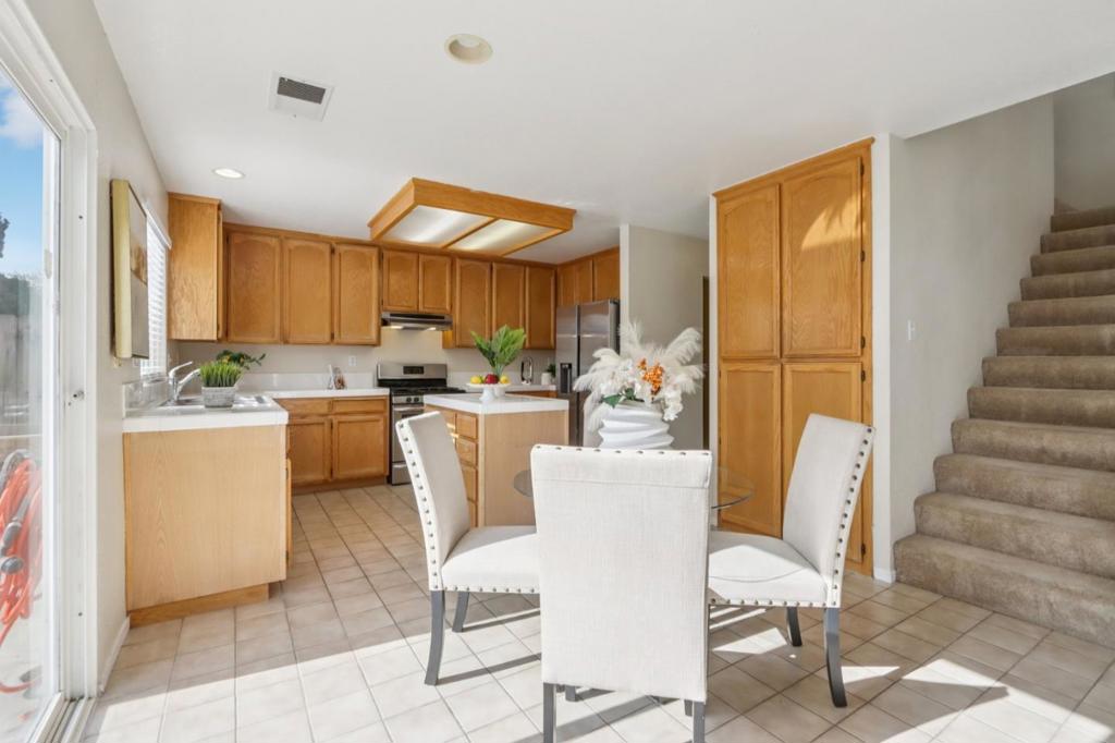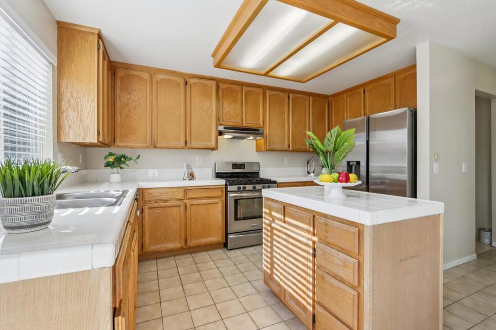 Welcome to a charming North-Facing corner single family home with 3-bedroom, 2- Full bathroom in the heart of Tracy. Ideal for Investors or First time Buyers. This thoughtfully designed residence offers 1,566 sq ft of comfortable living space, set on a 3,798 sq ft lot. Abundance sunlight through out the home with kitchen equipped with tile countertops, a dishwasher, a built-in oven range with gas hookups, a refrigerator, and a trash compactor, ideal for culinary enthusiasts. The home features a breakfast nook perfect for morning meals. Stay cozy with the central forced air heating and enjoy the convenience of central AC during warmer months. The home boasts beautiful floor-to-ceiling rock wall in FR, a combination of carpet and tile flooring, providing a blend of style and comfort. Relax in the inviting family room, complete with a fireplace, adding warmth and ambiance. Utility needs are met with laundry hookups for both electricity (220V) and gas in a dedicated utility room. The property includes energy-efficient double pane windows and a 2-car garage with side additional parking for RV / boat and shed (8 x 10) in the backyard, tropical feel b/yard with bamboo perimeter, raised bed with moss rock & ground lighting.