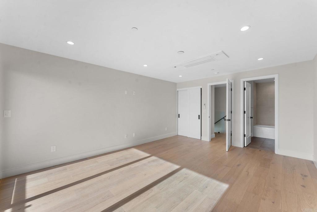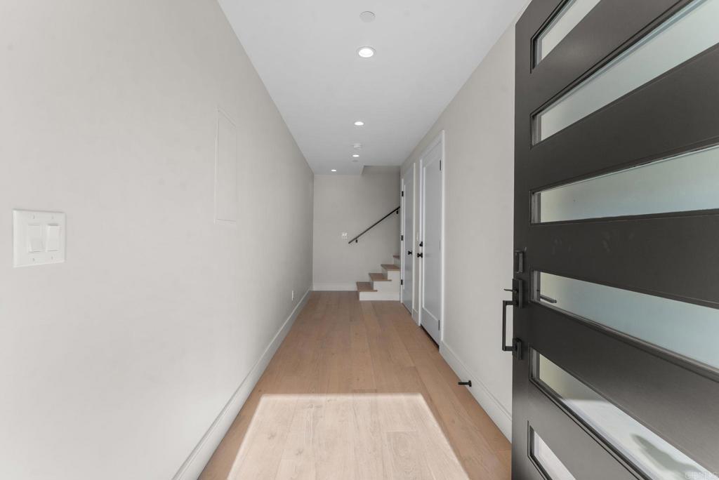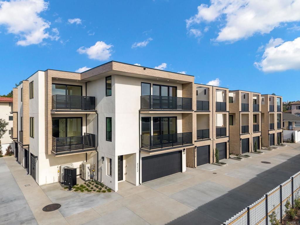 4212 Tonopah is a new construction luxury townhome in the Bay Park neighborhood of San Diego. 4212 is a corner unit with a stunning panoramic view of the bay and beyond! Perfect for enjoying sunsets and summertime fireworks. Features an open concept layout with designer touches, including a large kitchen with bar seating, solid surface quartz countertops / matching backsplash, and custom inset European slab cabinets. Brushed gold kitchen hardware, Thermador appliances, custom glass wall, floating iron staircases, engineered hardwood floors, and stylish lighting fixtures. The space is bathed in natural light from oversized windows and floor-to-ceiling balcony slider doors. Spacious bedrooms all with on-suite bathrooms. The large private garage (2 side by side parking spots) is set up for EV charging and home comes with owned solar. Comes with an upgraded home warranty (2-10 Home Warranty). Great central location provides easy access to transit, local dining, coffee shops, and the expansive Mission Bay Park, a 4,600-acre oasis perfect for biking, jogging, picnicking, and water sports. The expanded Blue Line (light rail), short walk away, connects to Downtown, UCSD, SDSU, UTC, Sorrento Mesa and beyond. Less than a 10 minute bike ride to USD. Project is VA approved.