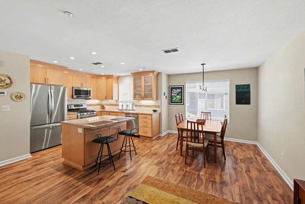 Just move in and unpack! This beautifully updated 3-bedroom, 2.5-bath residence offers the privacy of no upstairs neighbors and a thoughtfully designed layout. The remodeled kitchen features maple cabinetry, granite countertops, a center island, recessed lighting, laminate flooring, and newer appliances including a gas range. Bathrooms have been tastefully updated with custom tile work, modern vanities, and upgraded shower enclosures, with a shower-over-tub in the guest bath. Convenient inside laundry is located just steps from the bedrooms, and the oversized 2-car attached garage with opener provides excellent storage and ease of access. Enjoy separate living and family rooms with a cozy fireplace—perfect for both relaxing and entertaining. Step outside and stroll to the Marina, Benicia Yacht Club, or enjoy quick access to the Historic State Capitol, farmers market, downtown restaurants, scenic pier, community events, shopping, and medical facilities. Easy freeway access makes commuting throughout the Bay Area a breeze.
