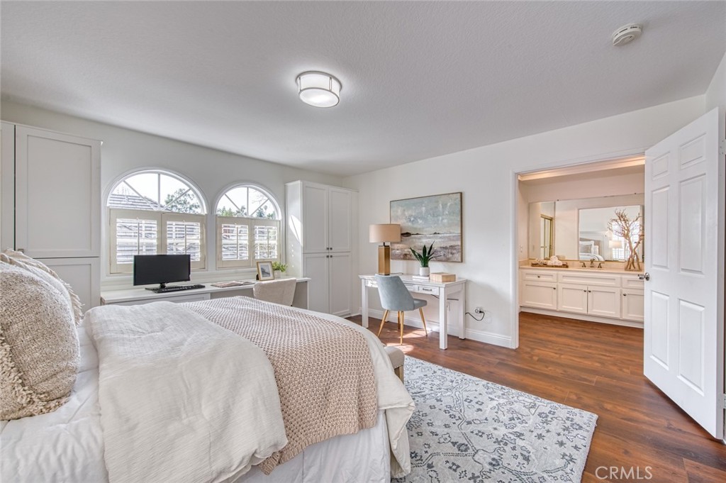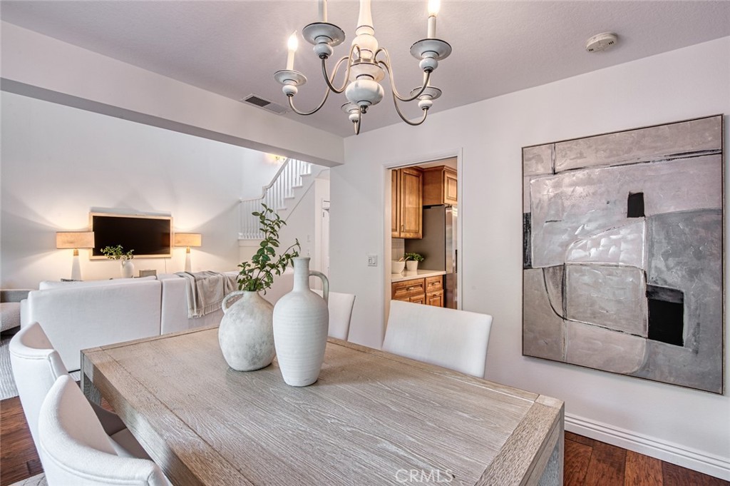Welcome to this beautifully maintained townhome that blends comfort, functionality and timeless style. Located in the exclusive Ville de Cerise gated community, which is known for its beautiful French-style architecture and low-density with only 48 homes. Thoughtfully designed living spaces are filled with natural light, creating a warm and inviting atmosphere throughout. Rare floor plan with a living room, formal dining room AND a separate family room. The well-appointed kitchen offers ample storage and workspace and features beautiful quartz surfaces, newer dishwasher, stove and refrigerator, and distinctive drop lighting. The bedrooms are generously sized, providing peaceful retreats. One of the bedrooms overlooks the beautiful slope and the other can serve as both a bedroom and a home office with it's built-in features and both bedrooms have walk-in closets. The bathrooms feature clean finishes and practical layouts; one with a step-in shower and the other with a large bathtub. Outside, enjoy a private space ideal for relaxing or entertaining, and the location backing to the lush slope is simply gorgeous. Large two car garage with built-in cabinetry, a sink and epoxy flooring. The Ville de Cerise community offers a pool and spa and has hiking and biking trails in the adjacent canyon. The HOA also re-piped and re-roofed every home, and re-paved the community. Terrific Laguna Niguel location that offers easy access to local amenities, schools, transportation and jst minutes to the Dana Point Harbor.