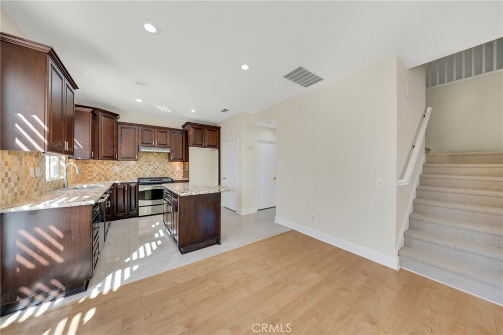 Welcome to this beautifully maintained three bedrooms single family home located in the highly desirable West Irvine community. This bright and spacious residence features an open concept floor plan with abundant natural light and elegant finishes throughout. The main level showcases warm flooring, recessed lighting, and expansive living and dining areas, ideal for entertaining and everyday living. The upgraded kitchen offers granite countertops, custom cabinetry, tile backsplash, stainless steel appliances, and a large center island, with direct access to the private backyard. Upstairs, the expansive primary suite features a walk in closet and ensuite bathroom. Two additional bedrooms and a versatile loft area provide flexible space for a home office, study, or playroom. Enjoy outdoor living in the private backyard with a covered patio, manicured lawn, and seating area, perfect for relaxation and gatherings. Additional features include an indoor laundry room, attached two car garage, and ample storage. Conveniently located near top rated schools, parks, shopping, dining, and major freeways. This home offers comfort, functionality, and an exceptional Irvine lifestyle.