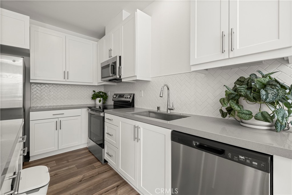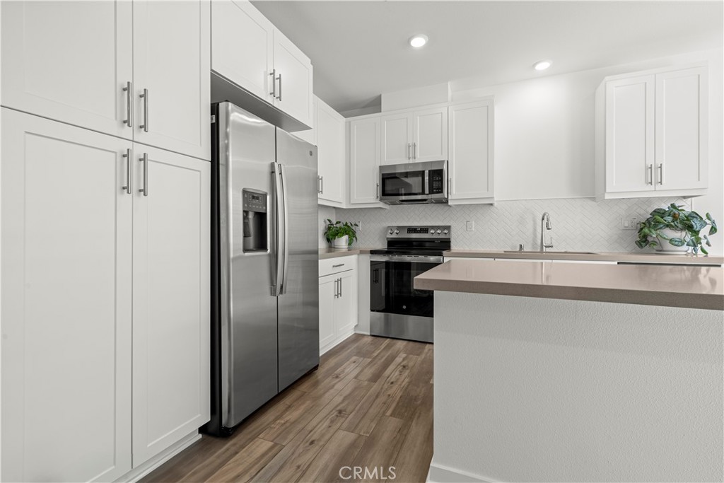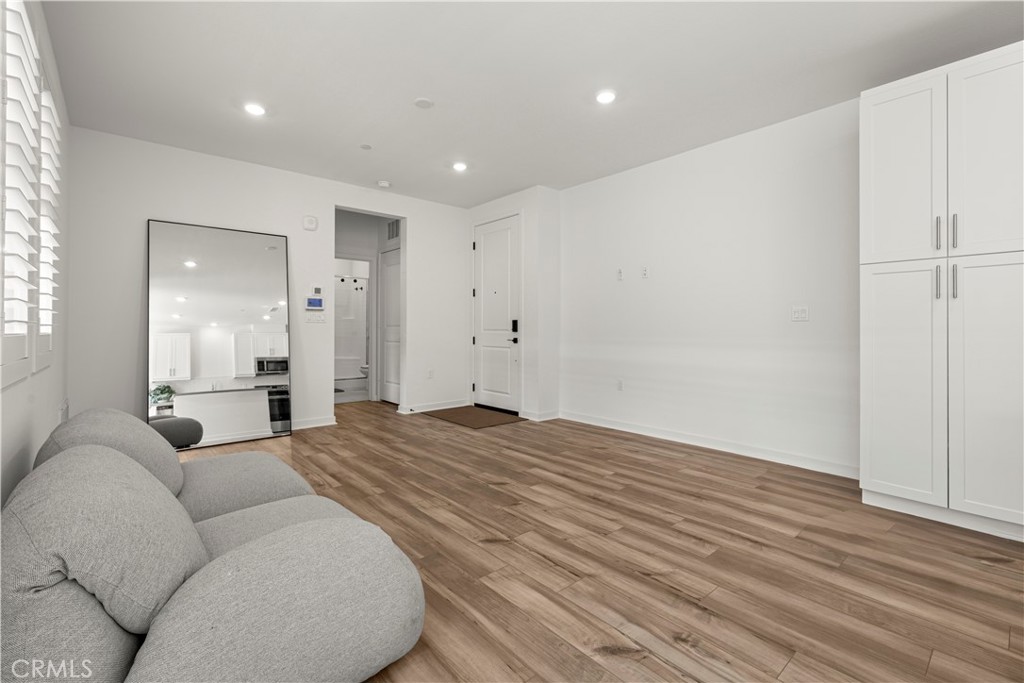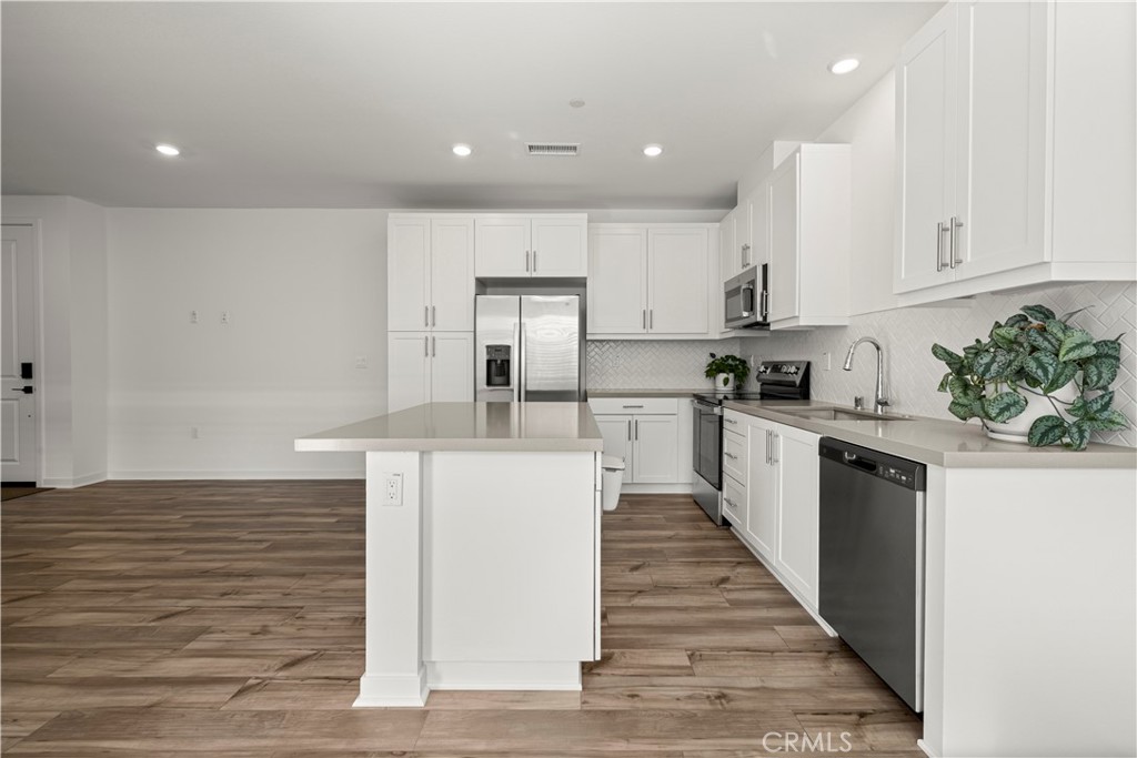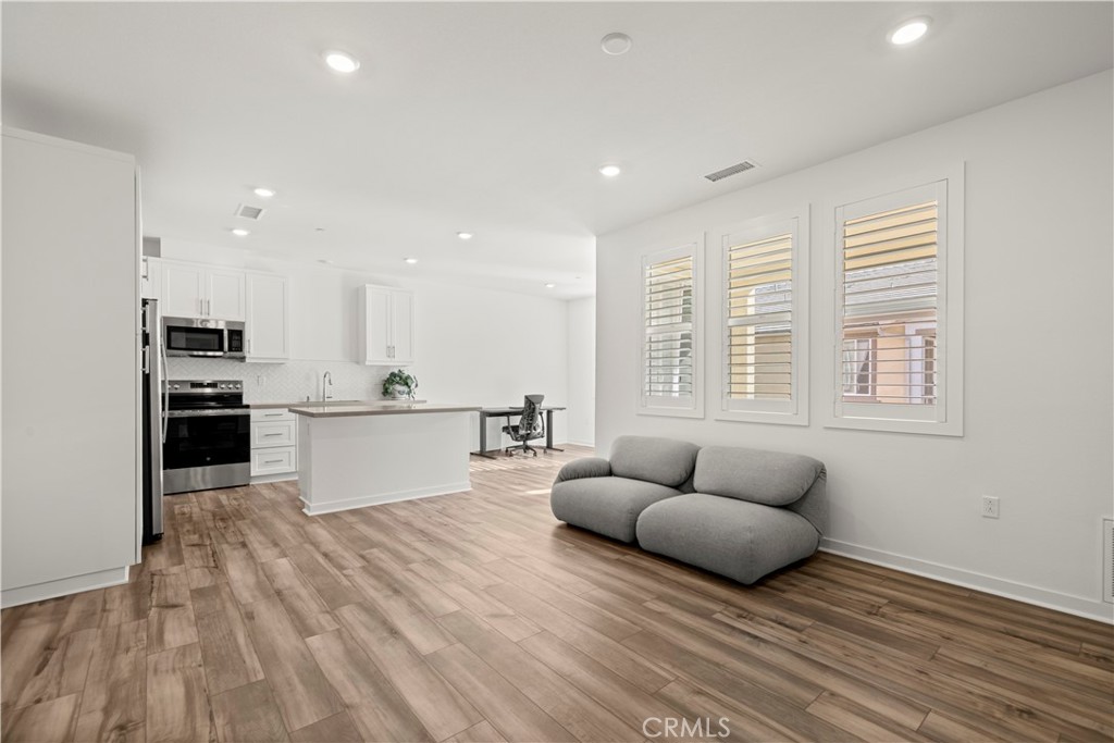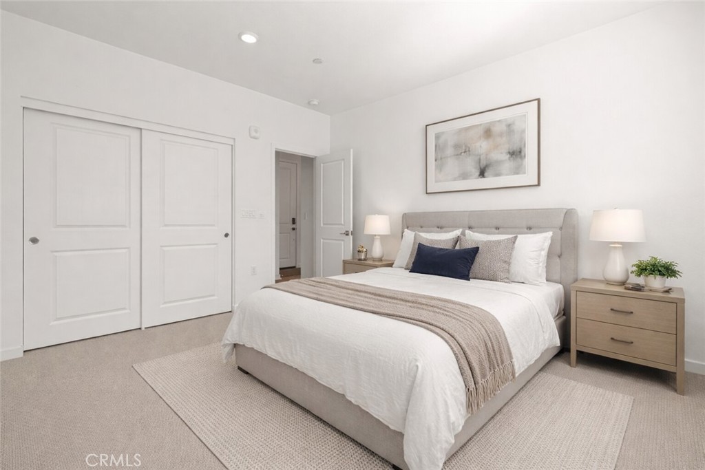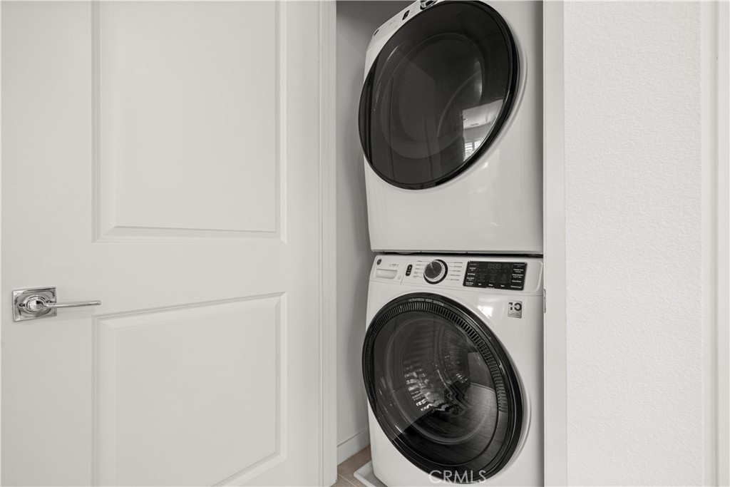 Welcome to top-floor, single-level living in nearly sold-out Eastvale Square, where privacy, comfort, and modern design come together seamlessly. This impeccable 2025-built attached flat offers the rare advantage of no neighbors above, a private garage on the first level, and a thoughtfully designed layout ideal for easy, low-maintenance living. This bright 1-bedroom, 1-bath home features a modern kitchen with island, open living space, and plantation shutters throughout for a clean, elevated finish. Step outside to your spacious private deck, perfect for relaxing or entertaining. The home also includes a convenient laundry closet with stacked washer and dryer, dedicated storage room, and all appliances included, making it truly move-in ready. Enjoy resort-style amenities including a pool, spa, BBQ areas, community parks, and scenic paseos — plus landscape maintenance is included, so your weekends stay free. Whether you’re a first-time buyer, downsizer, or investor, this home delivers style, privacy, and lifestyle in one of Eastvale’s most desirable new communities.