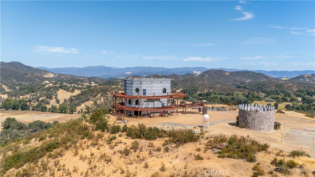 Rare opportunity to own one of the most unique, unfinished estates in Lake County, perched on a hilltop with panoramic views of Mount Konocti and Clear Lake and surrounded on three sides by open space & BLM land for unmatched privacy. This castle-inspired 5,171 sq ft residence with 796 sq ft garage was envisioned with bold architecture, a battlement roofline, cable-railed decks, mini-split HVAC, dumbwaiter, and even a hidden bookshelf leading to a secret room. Plans include 3-4 bedrooms, 3.5 baths, plus a rooftop designed for entertaining. The property offers incredible potential for a luxury residence, retreat residence/center, film location, festival venue, or glamping escape. Expansive third-floor views stretch across the lake, vineyards, and mountains, an ideal setting for photography, events, or creative projects. Construction is partially complete; much of the heavy lifting (foundation, framing, roof, septic, water, fire sprinklers and power) is done. Bring your vision, contractor, and imagination to finish what was started and create a landmark property like no other. This is a chance to design your dream while capitalizing on the groundwork already in place.