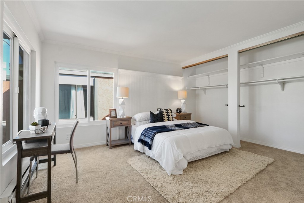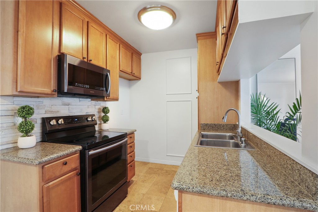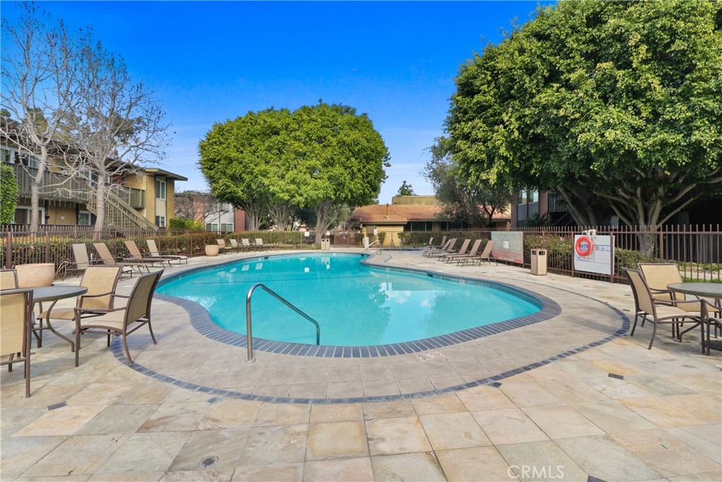 Enter through 2nd gate on Marigold**Rare top floor corner unit! This light filled move in ready condo offers open views, exceptional privacy, and a quiet setting in one of the most desirable locations within the community. Offering two bedrooms and two bathrooms the unit is thoughtfully designed for comfort and style, featuring real wood accents, elegant wainscoting, real wood kitchen cabinetry and beadboard detailing in the primary bedroom. Granite flooring in both the kitchen and bathrooms adds a refined and elevated finish. The residence has been updated with fresh interior paint, new carpeting with double padding for enhanced sound insulation, newer windows with tempered glass and hot and cold barriers, new light fixtures, a ceiling fan, and a new Siemens central electric panel. The remodeled bathroom showcases quality finishes, including a Kohler toilet. The property offers three parking spaces, a rare and valuable feature. Located within a gated, resort style community surrounded by mature trees and landscaped gardens the amenities include multiple swimming pools, spa, renovated laundry and fitness facilities, a gym with yoga studio, barbecue areas, and a well appointed clubhouse. Conveniently situated close to the freeway, the community maintains a peaceful atmosphere without freeway or Sepulveda noise. This exceptional condominium offers a harmonious blend of privacy, quality upgrades, and resort style living in a highly sought after setting.