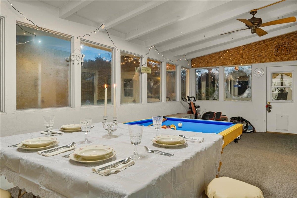 Welcome to this spacious two-story home in Rosemont, one of Newark's most desirable neighborhoods. Home open 2/21 & 2/22, from 1:00-4:00 PM. Perfect for entertaining, home features an open living room & dining room with built-in hutches, fireplace w/custom mantel & wood-burning insert, built-in seating and refinished hardwood floors; updated combination kitchen and family room with white cabinets, granite countertops, linear tile backsplash, stainless steel gas range & vent hood, newer Bosch dishwasher, double oven, refrigerator, extra-long built-in buffet with overhead glass-door cabinets, recessed lighting, pantry and new LVT flooring; spacious primary bedroom w/walk-in closet, new remote ceiling light, refinished hardwood floor & en-suite bathroom w/vanity, stall shower & new linoleum floor; one bedroom w/new carpeting & ceiling light & full bathroom w/stall shower downstairs; large approximate 370 square foot sunroom (not in square footage) w/two skylights; fresh interior paint; dual pane windows; newer gas water heater; 2 car garage w/storage cabinets & shelves; metal tile roof; fully landscaped front yard; large rear yard w/patio & storage sheds. Great commute location close to Meta, Ardenwood Technology Park & Dumbarton Bridge, with easy access to 880 & Silicon Valley