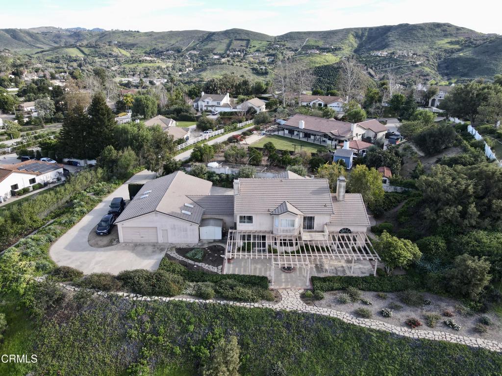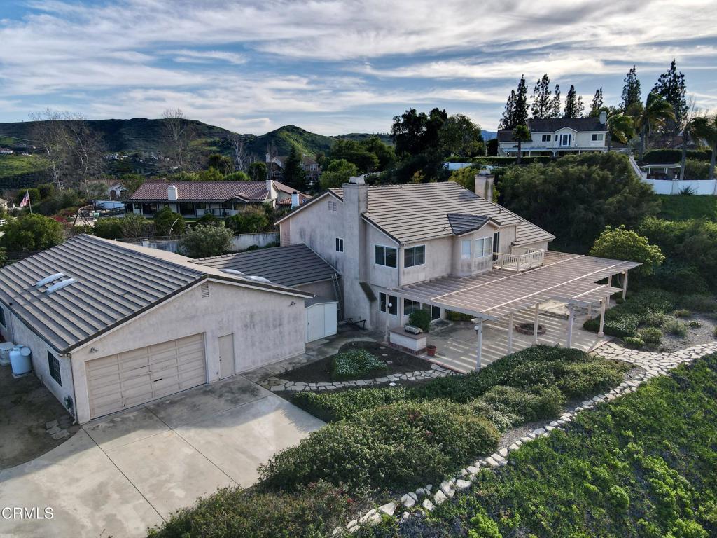 Welcome to 12387 Ridge Drive in beautiful Bridlewood. Rare find here, 12 car garage and workshop, pass thru garages, plus the 3 car garage for a total of 15 garage spaces. 45x30 RV parking, plus room around the property for 5 more cars. There is a Generac generator system, 22kw, guardian, that was 18,000 at time of purchase on the side of the house. You will never be without power! This beautiful home has amazing mountain and ocean views. Lot is very private. Set on 5.21 acres, with a very long driveway to the house for extra privacy, the home is 2 story, 3080 sq. ft. 4+3! When you walk into the house you are greeted with a beautiful foyer from double doors, cathedral ceilings and stunning staircase. Formal living room and Dining room, double sided fireplace, beveled stain glass windows, views from sliding doors. Spacious kitchen, wine frig, high end appliances, island cooktop, walk-in pantry, views from kitchen sink, and lovely breakfast nook. It opens to a large family room with a second fireplace and slider doors that leads you to the scenic views from the covered patio. On the main floor there is a bedroom and bathroom, a laundry room which includes washer and dryer, has a sink and counter space, includes lots of storage space. Upstairs, the primary suite offers vaulted ceilings, views from every window, a soaking tub, dual vanities, one on each side of the tub, make up area, huge walk-in closet, sep shower. Two additional bedrooms and one more bath upstairs. This home is a spacious 4+3. Outside, beautiful grounds, rose garden, trees that create a quite beautiful space, covered patio with fire pit, spacious entertaining area surrounded by flowers, easy access to the kitchen, built in Bar-B-Q, lighting creates party atmosphere, sellers have had many large parties in the covered area. Additional upgrades, house was redone with all copper plumbing was 80,000, filtration water system stays, water heater and furnace are newer, air conditioner has 2 zones, Bridlewood HOA has a 2025 Fire wise Certificate reducing wildlife risks.