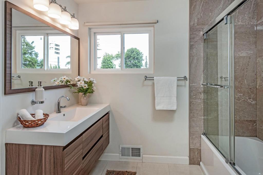 Beautifully remodeled with turnkey appeal, this North Fair Oaks gem showcases modern livability midway between Silicon Valley and San Francisco. The flexible two-story layout features two bedrooms and two remodeled baths, all enhanced by a palette of soft designer colors and white oak engineered hardwood floors. The open living area at the entrance has a modern chandelier and connects seamlessly to the sleek kitchen with a quartzite-topped peninsula with counter seating, custom suspended vent hood, and stainless steel appliances. At the rear of the home is a spacious family room that opens to the private paver-finished rear yard. A main-level bedroom and bath are complemented by the upstairs primary suite with walk-in closet, western hill views, and well-appointed bathroom. Smart features include a Ring doorbell, keyless front entry, and a smart thermostat along with central air conditioning. Roses, geraniums, and a camellia enliven the setting, which has ample off-street parking and an attached 1-car garage. Just blocks from the Redwood City Stanford campus and minutes to Meta headquarters and Highway 101.