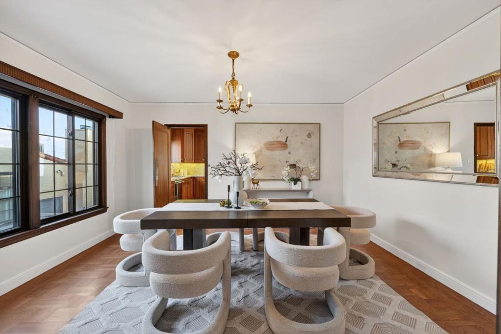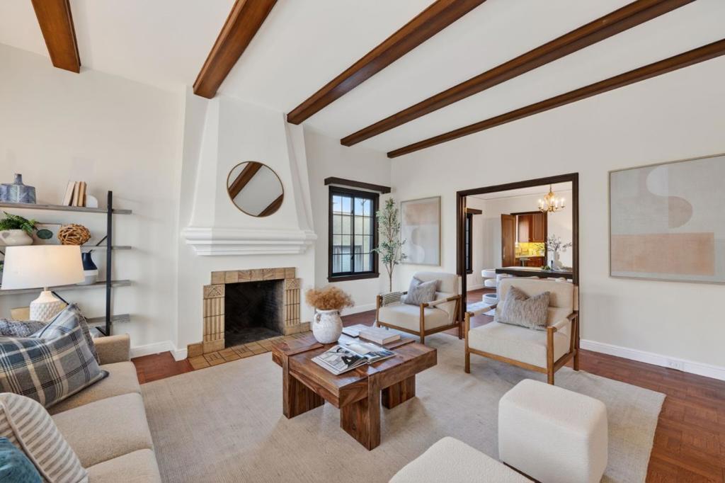Location, Location, Location with a Walk Score of 83 (Very Walkable). Enjoy the best of Millbrae living in this beautifully located Mediterranean home less than half a mile from vibrant Downtown Millbrae, featuring diverse shopping, dining, and entertainment. Close to highly rated schools and Millbrae's Central Park. Just over 1/2 a mile to Millbrae BART & Caltrain Station, while Highway 101 is only one mile away for an easy commute. Situated on a quiet, tree-lined street in desirable Highlands Millbrae, this charming residence showcases a red tile roof, graceful archways, classic stucco exterior, wrought-iron railings, and teal trim. Inside, the formal living room features a cozy fireplace, exposed beam ceiling, and expansive windows with a Juliet railing. Parquet flooring flows into the formal dining room through wooden double doors. The eat-in kitchen offers ample cabinetry, stainless steel appliances, granite countertops, and opens to a breakfast nook, family room, and upper-level deck. Two main-level bedrooms and a full bath include a primary bedroom with deck access. The lower level includes a private in-law unit with full kitchen, laundry, bedroom, bathroom, and patio access. The backyard offers a spacious lawn, mature landscaping, lemon trees, and a storage shed.