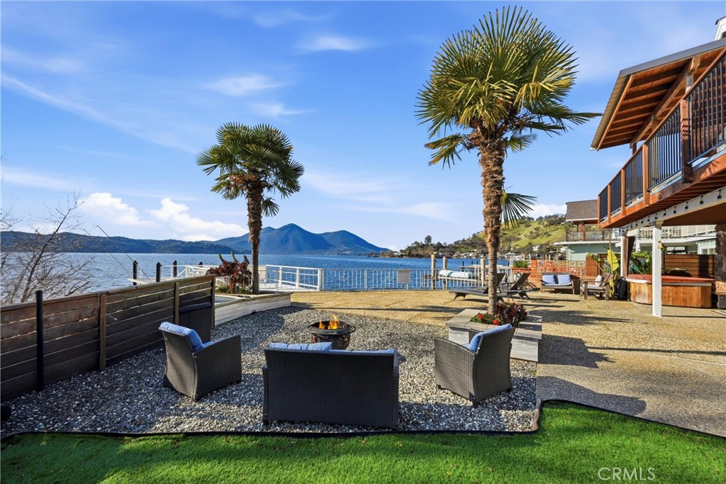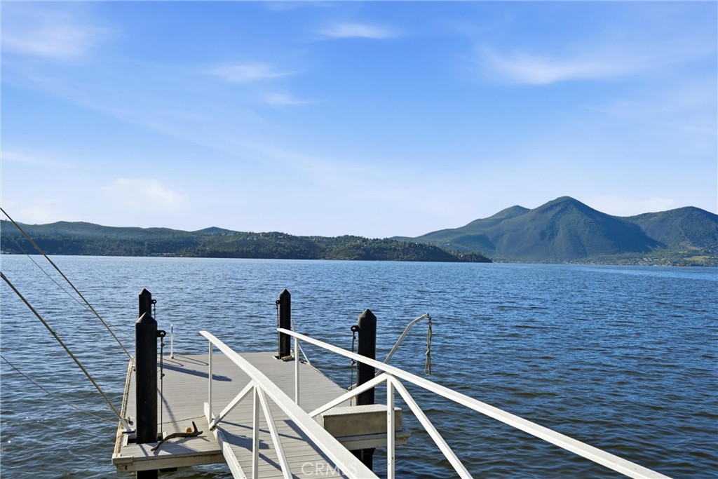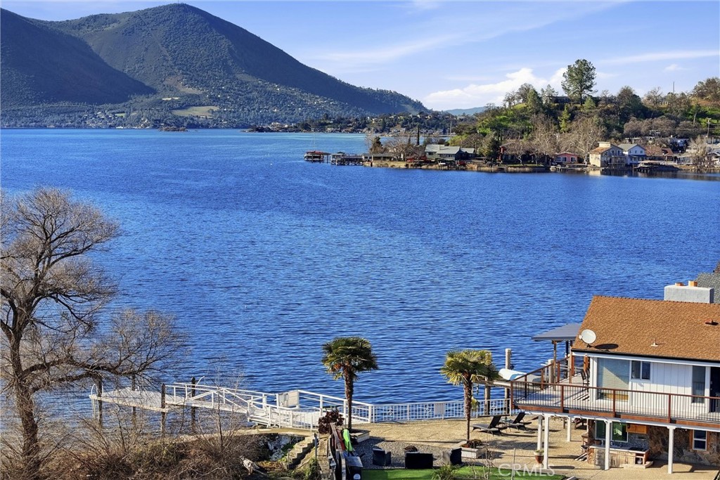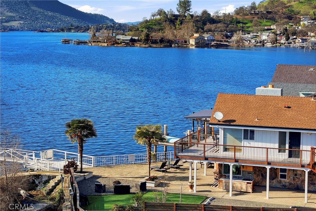 Peaceful Lakefront Retreat with the best panoramic views of beautiful Clearlake and Mt. Konocti. Situated in Oak Cove, this two-story private residence offers versatility as an income generating vacation rental or occupy for your own personal use (or both). Each level provides an individual living space with it's own private entrance and has been updated on both levels with custom finishes including stone fireplaces, LVP flooring, tiled bathrooms, cabinetry and lighting! The second level was previously operated as a short-term rental and offers open concept living with 3 bedrooms/1 full bath, a galley style kitchen, laundry room, and living room with attached deck to soak in the spectacular views. The main level is currently used as a primary residence and includes 2 bedrooms/1 bathroom, an extra storage room, and open concept kitchen/living room design. There is plenty of room to entertain on the oversized patio out front and enjoy fishing and/or swimming off your private pier with attached floating dock. The low-maintenance patio also includes a fire pit area and included spa for ultimate relaxation. Situated on over 60' of lakefront seawall, including a rock jetty, this property adjoins a protected marina next door for additional temporary parking for boats and/or other small vessels. Located less than 10 min from nearest boat launch and other amenities, this property is the epitome of lake living at it's finest.