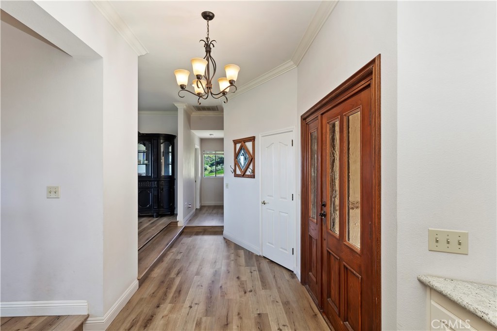 Get away from it all—enjoy peaceful rural living just 15 minutes from the city. This custom-built home, constructed in 1989, sits on over two acres of land and offers breathtaking panoramic views that stretch for miles. An impressive 80-foot wraparound deck provides the perfect vantage point to enjoy sweeping views of Lake Mathews, mountain vistas and sparkling city lights. Designed as a true two-homes-in-one, the main level features three bedrooms, two bathrooms, a spacious family room, kitchen and a combined living and dining area. The lower level has its own private entrance and includes two bedrooms, a beautifully appointed bathroom with step-in shower, and a small kitchen—ideal for multi-generational living, a college student, guests, or rental income potential. The main kitchen is a chef’s dream, boasting a large island with built-in granite cutting surface, stainless steel appliances, cooktop stove, wine cooler, triple-well sink, six integrated cutting boards, walk-in pantry, breakfast bar seating, and a charming bay window overlooking the lake—perfect for enjoying the view while you cook. The expansive family room offers a marble fireplace, built-in nook seating, and a coffered ceiling accented with backlit crown molding. Additional highlights includes 3194 Sq/Ft of living space, solar, pocket doors, LVT flooring throughout, 9-foot ceilings, water filtration and softener system, tankless water heater, a 90 Sq/Ft vault room ideal for valuables or a wine cellar, built-in cabinetry, sconces, ceiling fans, and a walk-in closet. The exceptional two-acre lot provides ample space for RVs, boats, and toys, over 1400 Sq/Ft of garagae space to include a 30' x 12 RV/toy garage with 12-foot ceilings, and a oversized garage with 220-volt outlets. The property features a very low tax rate, no homeowners association, and is located within the Corona School District, serving Santiago High School. A truly unique property with endless possibilities—privacy, flexibility, and views you have to see to believe.
