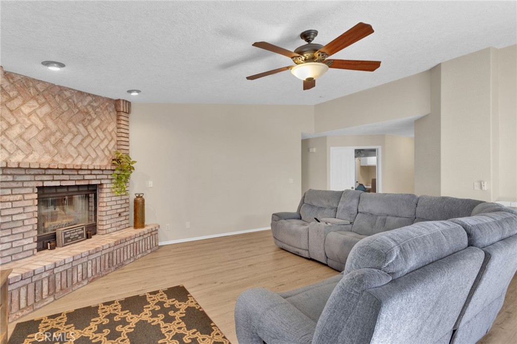 Welcome to your dream home nestled on a peaceful cul-de-sac within the coveted Spring Valley Lake Association community! This beautifully crafted three-bedroom, two-bathroom residence offers 1,804 square feet of thoughtfully designed living space that perfectly balances comfort and style. From the moment you approach, the impressive curb appeal and large covered front patio set the tone for what awaits inside. The heart of this home features an entertaining kitchen with generous dining area, convenient walk-in pantry, and eat-in bar that flows seamlessly into the open living room. Here, a stunning floor-to-ceiling brick fireplace creates a warm focal point, while wood flooring and sliding doors lead to your covered side patio. The versatile front bedroom doubles as an office, complete with a clever converted desk closet for the work-from-home professional. Primary suite serves as a true retreat, boasting a spacious walk-in closet and spa-inspired bathroom with dual vessel sinks, a soaking tub, and custom tiled shower. Laminate flooring throughout, ceiling fans in every room, and inside laundry with built-in storage add practical touches you'll appreciate daily. Step outside to discover a low-maintenance backyard paradise featuring beautiful shrubs, covered patio, and privacy-enhancing block walls with wrought iron fencing. Home Security systema with cameras, motion and door sensors (Nest). The neighborhood truly shines with access to a private 200-acre lake, fourteen fishing areas, three parks, a golf course, private marina, beach, clubhouse, and around-the-clock patrol. At this price point, this quality-built gem delivers exceptional value. Seller willing to assist with buyers rate buy down and / or closing costs.