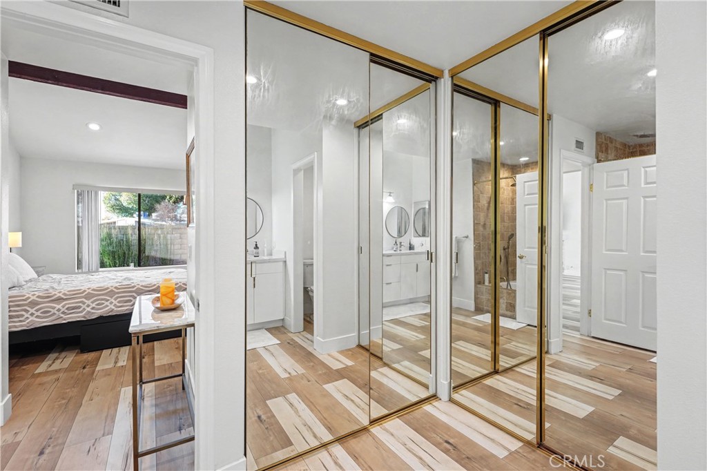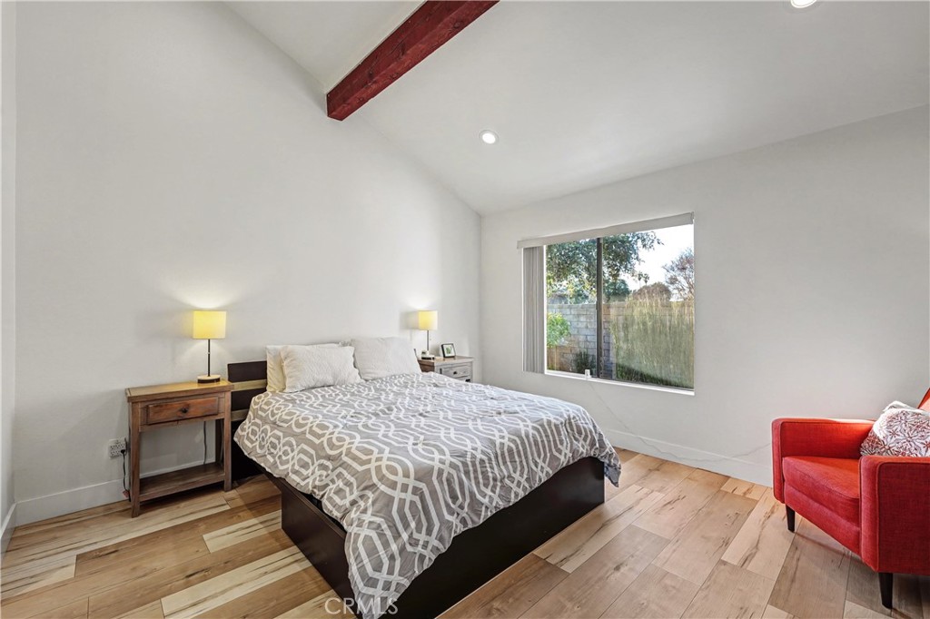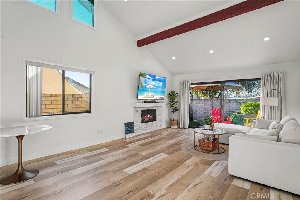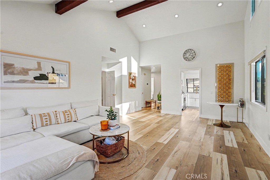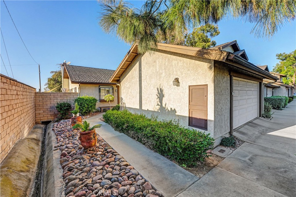 A rarely found Single-Story end-unit townhouse with incredible high-ceiling nestled in the back of the desirable gated community of Emerald Crest. Blending modern upgrades and effortless living, this home features numerous recent upgrades, including a newer kitchen with Euro style self closing cabinets, newer stainless steel kitchen appliances, newer modern style bathrooms, newer LVP flooring throughout, LED lighting in all rooms and a newer designed stylish backyard. Upon entering, you're greeted by a spacious open floor plan that seamlessly connects the dining and living areas. The vaulted ceilings and abundant natural light create an airy, inviting atmosphere. The living room features a cozy brick-accented fireplace and a full wall-sized sliding glass door that opens to a beautifully maintained backyard. The modern kitchen is a standout, featuring white cabinetry, gleaming quartz countertop, the matching backsplash, a farmhouse sink accented by elegant gold-tone fixtures, and stainless-steel appliances—including a newer range, microwave, dishwasher, and newer refrigerator. The expansive primary suite boasts vaulted ceilings and a large double side opened closet. The en-suite bathroom offers dual sinks with white cabinetry and quartz countertop. The shower in tub area has stylish tiles with gold-tone fixtures. The quiet backyard offers a serene escape, with lush, well-kept grass, a concrete entertaining area, and a wood patio, all surrounded by brick walls for complete privacy. It’s an ideal setting to relax after a busy day or enjoy memorable family gathering. Additional highlights include an attached two-car garage and access to community amenities such as a gated pool, jacuzzi, and a private clubhouse. HOA covers roof, pool, jacuzzi, common area and fire insurance. Conveniently located near top-rated elementary, junior high, and high schools, shopping centers, hospitals, and with easy access to the 10, 57, 60, and 605 freeways, this home offers comfort, style, and exceptional convenience.