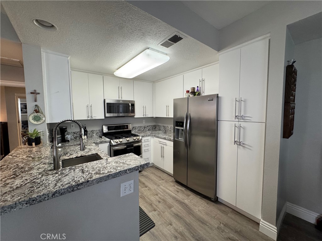 Welcome to Canyon Villas in scenic Aliso Viejo. This Cape Cod inspired exclusive private gated community has lots of amenities including clubhouse, resort style pool, spa, gym and tot lot. Looking for a 1 bedroom, end unit that is light and bright with no stairs that is beautifully remodeled? This is it. You are greeted by a wrought iron gated private, covered patio. Perfect for entertaining and a place to BBQ. Also is a convenient closet area for your washer and dryer. The kitchen is sure to please with gorgeous natural stone granite counters, new custom white cabinets, stainless appliances, farmhouse stainless oversized sink, breakfast bar and is open to the family room. You will appreciate the dining area and recessed area for a desk if you work from home. The bedroom is spacious and the bathroom has two sinks and granite counters. There is an oversized tub and shower and plenty of storage and closet space. The flooring is a neutral wide plank luxury vinyl. This end unit is light and bright. This unit has a detached single car garage. The beautiful community is in close proximity to Laguna Beach and Dana Point. Close by is Costco, Walmart, lots of shops and many restaurants. A short drive to the 5 fwy and the toll road. Enjoy coastal breezes, hiking and bike trails. The best is waiting for you...experience the California lifestyle in south OC and all it has to offer.