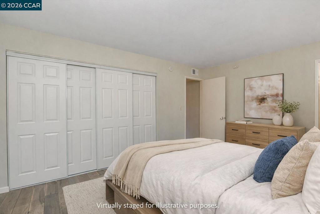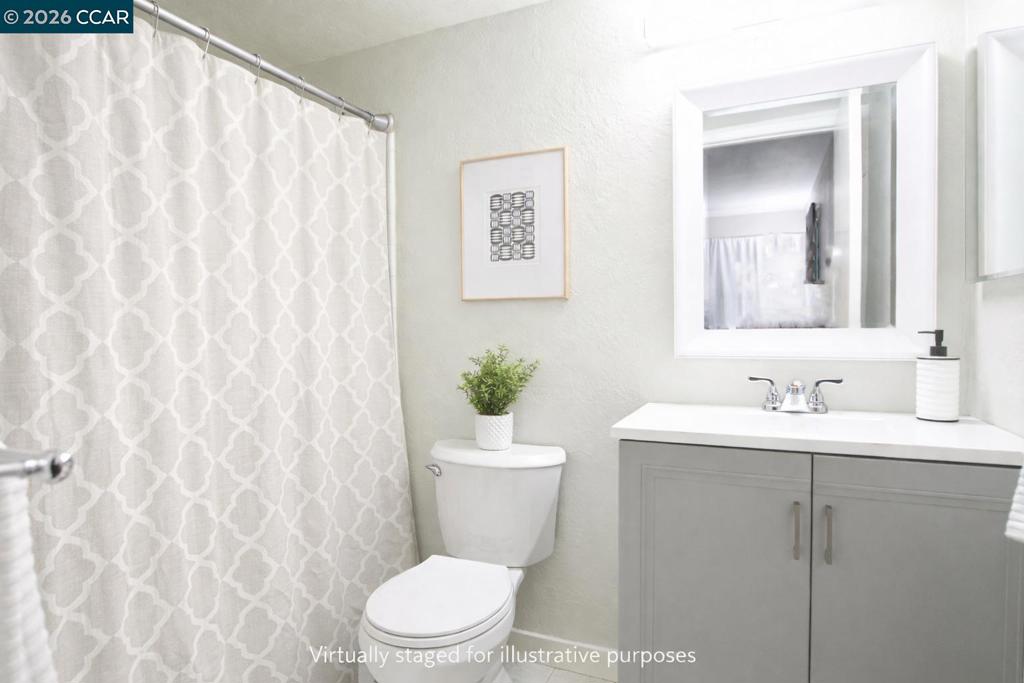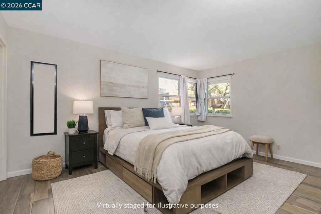 Welcome to this charming first-floor end unit in the beautiful Shadow Wood community! This 2-bedroom, 2-bathroom home offers a serene setting surrounded by mature trees, creating a peaceful retreat. Step inside to a spacious living room featuring a cozy wood-burning fireplace, perfect for relaxing evenings. The galley-style kitchen boasts a convenient breakfast counter with additional storage, seamlessly flowing into the dining area—ideal for entertaining. Large pantry/storage closet. Spacious Primary with Large closet. Enjoy the convenience of inside laundry with a stackable washer and dryer & dual-pane windows. Relax on your patio & enjoy your coffee on a peaceful morning with gate access to walkways. You'll have access to fantastic amenities, including a pool, spa, tennis courts, and clubhouse. Centrally located just minutes from shopping, dining, BART, and freeway access, this home offers both comfort and convenience. Some images in this listing have been virtually staged to help illustrate potential furniture placement and design concepts. Actual property conditions may vary. Open House Sunday 02/01, 11am-1pm.