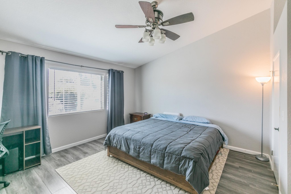 Don't miss out on this amazing house located very close to freeway access, parks and shopping. Home features a formal living and dinning room, updated kitchen that opens to the family room, full bed and bathroom on the first floor, "Jack and Jill" bathroom on the second floor with a large master suite. The backyard is ideal for entertaining with a large covered patio equipped with a fan. This home has new windows, new dishwasher, 4 three-way in wall surround sound speakers in living room, new gutters and more.