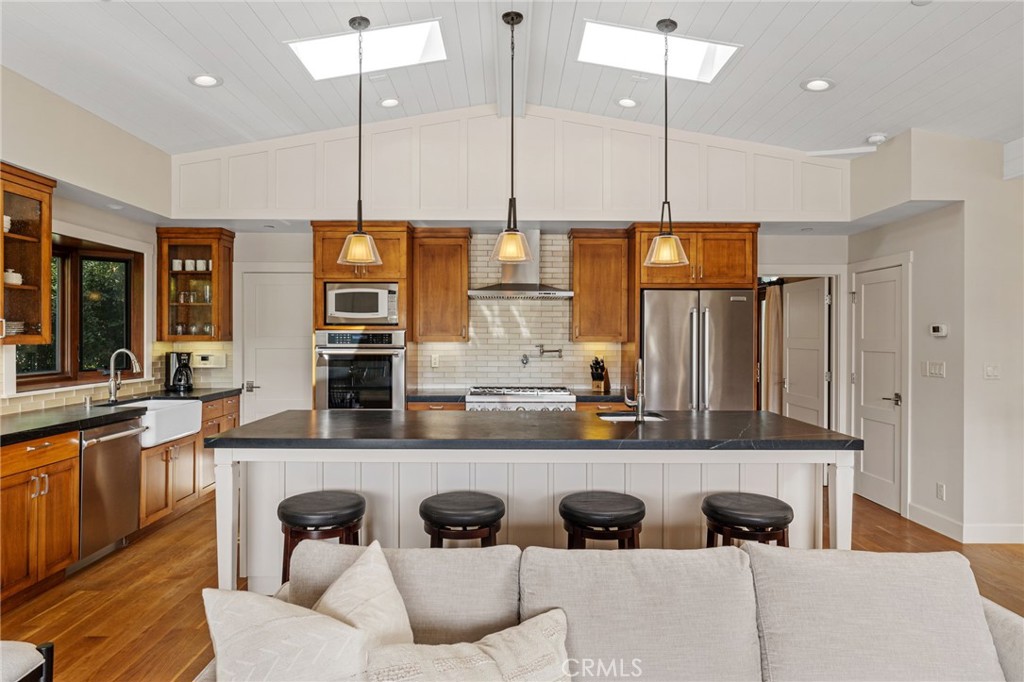 Coastal Living, Redefined — Two Distinct Homes in the Coveted Sand Section of North Hermosa Beach. An exceptional opportunity awaits just steps from the sand, Valley Park, and the vibrant energy of Pier Avenue. Situated on an expansive 6,251 sq ft lot in one of the most desirable pockets of North Hermosa Beach, this unique property features two beautifully crafted residences — a custom contemporary craftsman main home designed by the late Stan Anderson, and a charming mid-century modern back house offering privacy and versatility. The main home, built in 2013, showcases refined coastal style and offers 2,128 square feet of living space with 3 bedrooms, an office, two full bathrooms, and two half baths. Solid wood flooring, curated designer furnishings, and thoughtful architectural touches create a warm and elevated atmosphere throughout. The sun-drenched great room on the second level boasts vaulted ceilings, a cozy fireplace, and custom tri-fold doors that open to an expansive balcony — ideal for effortless indoor-outdoor living. The chef’s kitchen is a showstopper, featuring black soapstone countertops, a large island, custom cabinetry, luxury appliances, and a walk-in pantry. Off the living room is a small private office full of natural light. The serene primary suite offers a private retreat with a wrap-around balcony, spacious walk-in closet, and spa-like bathroom complete with heated floors, a soaking tub, and dual vanities. Downstairs, two additional bedrooms share a full bath and are anchored by a cozy den and built-ins, while the private backyard oasis is perfect for relaxing or entertaining under string lights by the fire pit. The two-car garage has ample storage and option to add EV charging. There’s additional two-car parking in the driveway. The back house, built in 1957, is a beautifully maintained 3-bedroom, 2-bath mid-century modern gem offering approximately 1,200 sq ft of living space. Enjoy the tranquility of a 1,500 sq ft private patio, your own laundry area, and dedicated off-street parking for two cars. With its own private walkway to the back house and ample separation from the main house, this is an ideal setup for extended family, guests, or rental income. A rare find in Hermosa Beach, this exceptional property blends timeless architecture, modern luxury, and a premier coastal location — creating the ultimate beachside lifestyle. Don’t miss this one-of-a-kind opportunity to own a slice of paradise in the Sand Section.