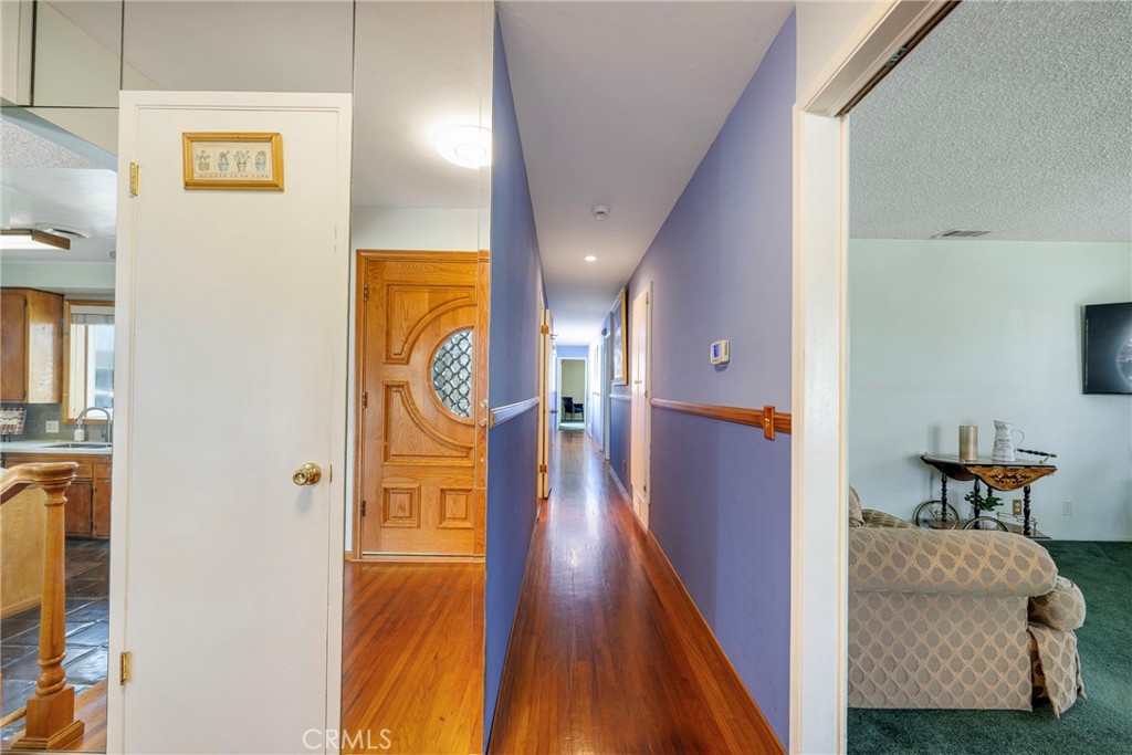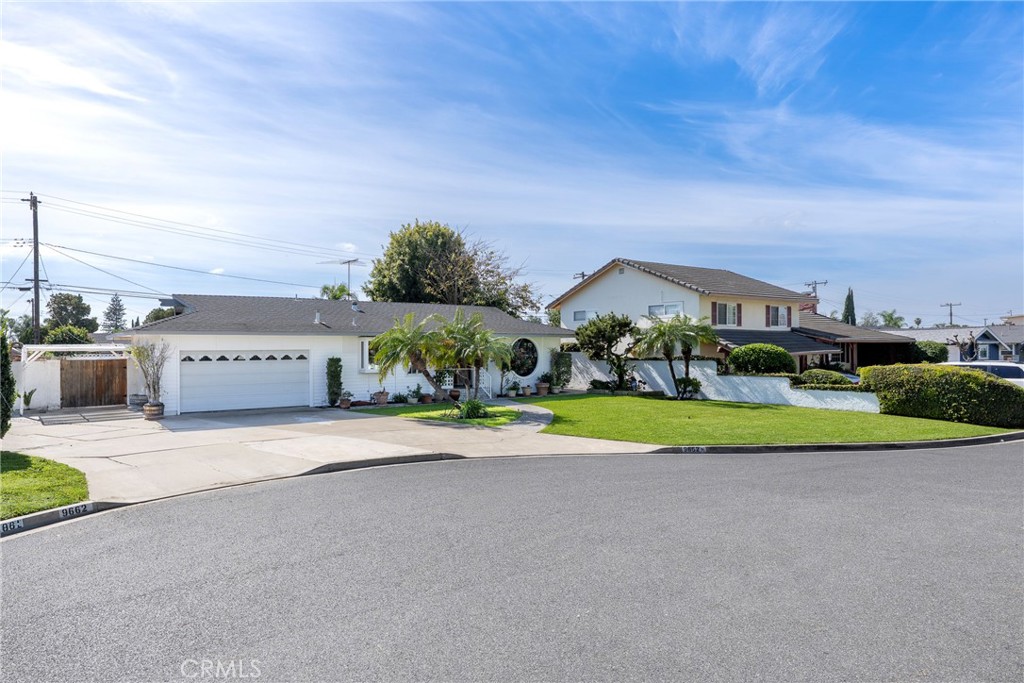 This ranch style home, located close to such entertainment amenities as KNOTTS BERRY FARM, DISNEYLAND & ANAHEIM STADIUM, boasts stunning curb appeal featuring beautiful landscaping, a 2 CAR DIRECT ACCESS GARAGE & a CARPORT WITH GATE ACCESS to the backyard on the left side of the home, as well as a GARDEN WINDOW to the kitchen, & a welcoming entry PORCH. As you enter the CUSTOM DOUBLE FRONT DOORS made of rich wood & circular glass mirroring the large circular living room window facing the street, you find yourself in a spacious entry with WOOD FLOORING ( through much of the house ) & a coat closet. To your right is the formal living room with 2 sets of windows along one side wall with WINDOW SHUTTERS ( on many windows ) & a long hallway with a plethora of storage cabinetry for linens & supplies that leads to the 3 BEDROOMS & 2 REMODELED BATHS. One bathroom has a beautifully tiled STEP IN SHOWER & sink/vanity with plentiful storage & updated TILE FLOORING. The 2nd updated bathroom has a bathtub/shower with a safety bar for easy access in & out for old & young alike. Two secondary bedrooms feature MIRRORED CLOSET DOORS with additional storage cabinets above them. The third bedroom has a WALK IN CLOSET. There is a door off this hallway into to the back yard. Going left from the front door leads you to the kitchen & family room. The KITCHEN has a built in DINING NOOK with fanlight & a door directly into the 2 CAR GARAGE with abundant storage areas. The garage also has the water heater, a UTILITY SINK WITH FAUCET between the washer/dryer area & has a door leading into the back yard. The kitchen is open to the FAMILY ROOM with a FIREPLACE & a sliding door to the AMAZING AMENITIES found in the EXPANSIVE BACK YARD. Upon entering the back yard patio area your eyes span left to right & see the POOL, SPA, FIRE PIT & Gazebo. Then there is an open area of large concrete pavers with a garden area & FOUNTAIN at the right side of back yard. This over 10,000 sq ft LOT does not disappoint! THIS PROPERTY IS A MUST SEE!