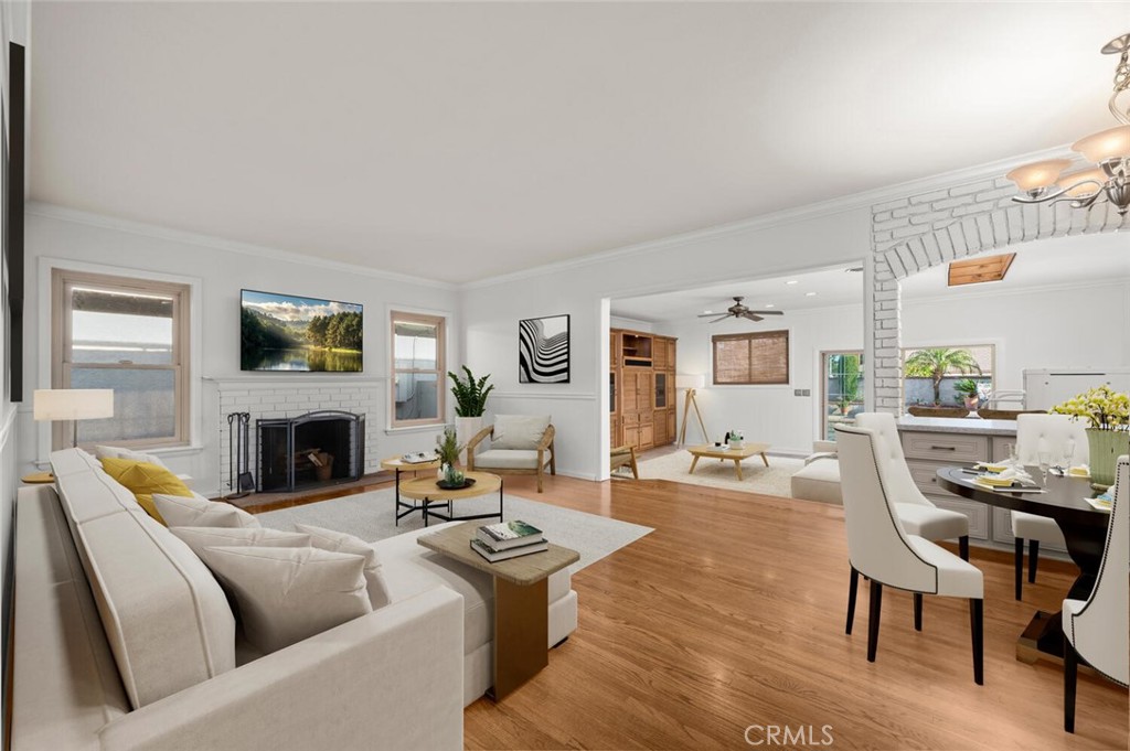 Welcome to 14132 Carfax Ave — a rare entertainer’s home in the heart of Tustin! This 4-bedroom, 2-bath residence offers approximately 2,397 sq. ft. of living space on a 7,256 sq. ft. lot, combining timeless character, smart updates, and a backyard designed to impress. From the curb, the home stands out with a large driveway featuring brick inlays, one-car garage plus carport, brick planters, mature landscaping, lush lawn, palm trees, and an RV clean-out for added utility. Inside, original wood floors, a classic brick fireplace in the cozy and charming family room, and a bright, open flow create a warm and inviting atmosphere. The updated kitchen connects seamlessly to the family and living areas. Step down into the huge living room that includes built-in cabinetry, recessed lighting, and a skylight for abundant natural light looking out to the pool deck. The oversized primary bedroom offers generous space and a walk-in closet. The home is handicap accessible and also includes an inside laundry room, den, and walk-in shower. This home also comes equipped with solar panels to keep your energy costs nominal. The true showstopper is the backyard. Designed for entertaining, it features a sparkling pool with new PebbleTec finish and a spacious deck. The removable pool fence offers flexibility for gatherings. The separate pool house elevates this property to a rare find — complete with a stone sauna, shower, bathroom, and drinking fountain. This is a backyard built for hosting, relaxing, and enjoying Southern California living year-round. A unique opportunity to own a feature-rich home with exceptional entertaining potential in a desirable Tustin location