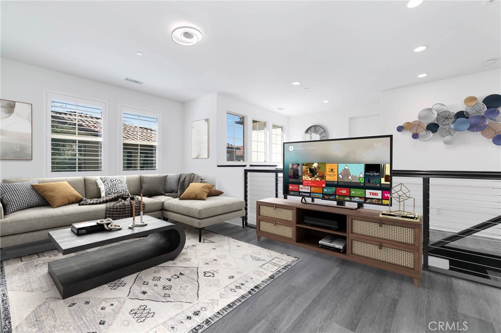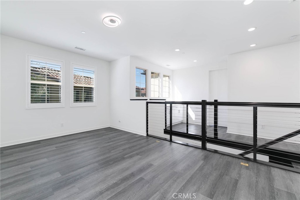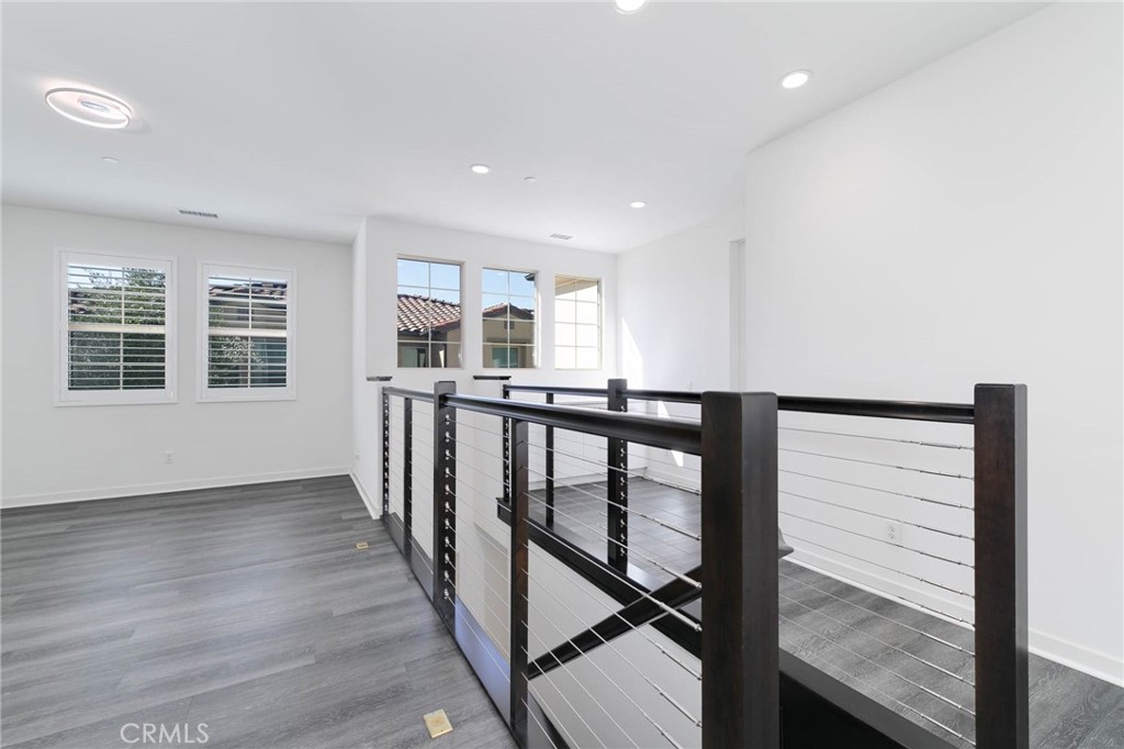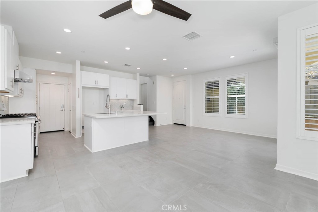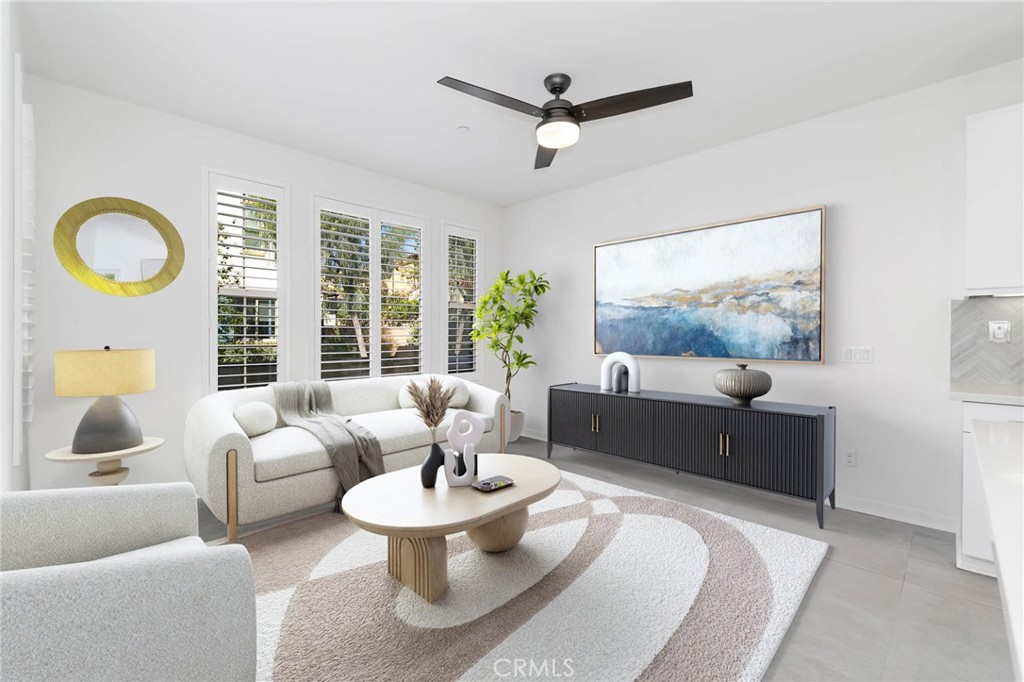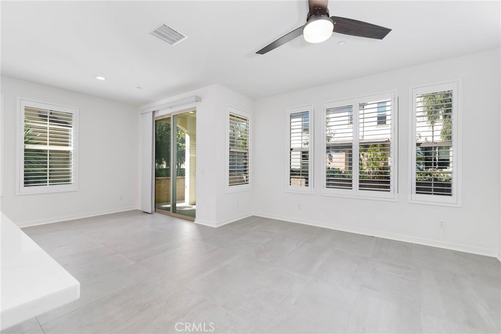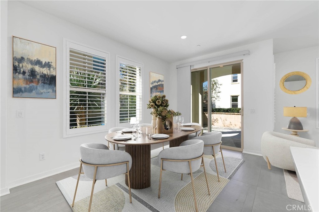 Luxury end-unit, two-story townhome offering 1,655 sq ft of light-filled living space and one of the largest private courtyards with California room. Built by Shea Homes, this turnkey 2-bedroom plus loft, 2.5-bath residence features premium upgrades throughout. The loft was a builder option in lieu of the third bedroom. Highlights include oversized tile flooring, gourmet kitchen with custom herringbone backsplash, plantation shutters, striking stone accent wall, industrial-style stair railing, luxury vinyl flooring upstairs, epoxy garage floor, water softener, and 240V EV charging outlet. Low HOA, no Mello-Roos, and top-rated schools. Located in desirable Baker Ranch. Property is unfurnished. Some photos have been virtually staged for illustrative purposes.